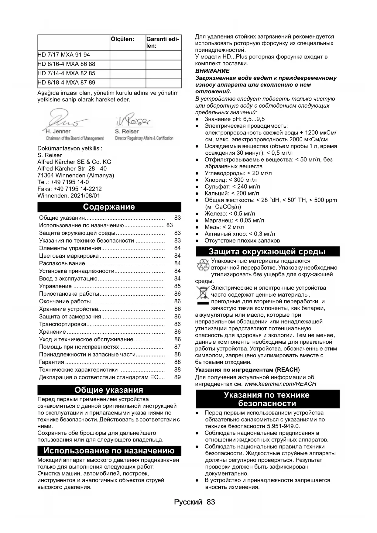 - Декларация о соответствии стандартам ЕС Ölçülen: Garanti edi- len:84 Русский Символы на устройстве Устройство запрещается подключать непосредственно к коммунальной хозяйственно-питьевой водопроводной p. 89