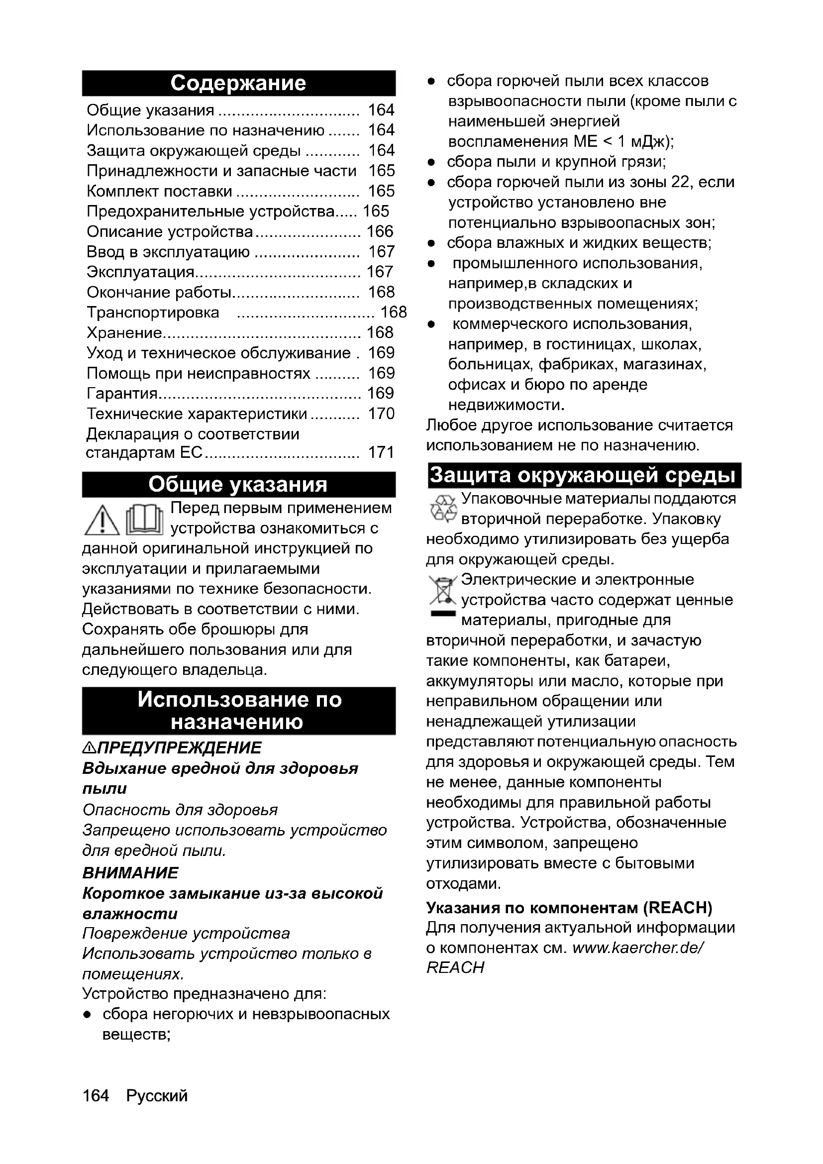 - Указания по компонентам (REACH) Для получения актуальной информации о компонентах см. www.kaercher.de/ REACH Общие указания p. 164