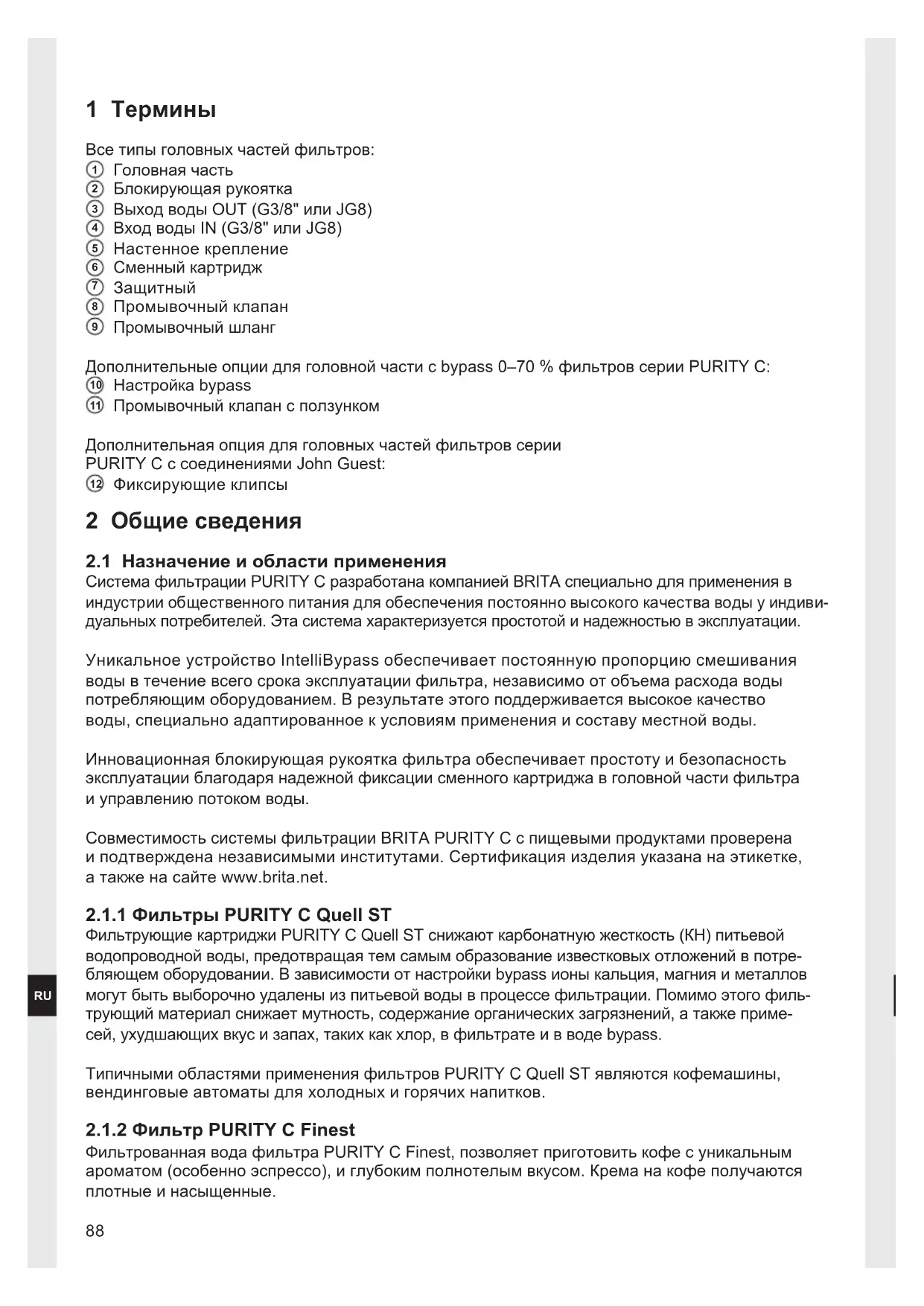 - Для фильтр-систем BRITA следует использовать водопроводную воду питьевого качества. Фильтр-системы BRITA серии PURITY C подходят к использованию только для холодной воды, имеющей температуру в пределах диапазона, указанного в главе 9.