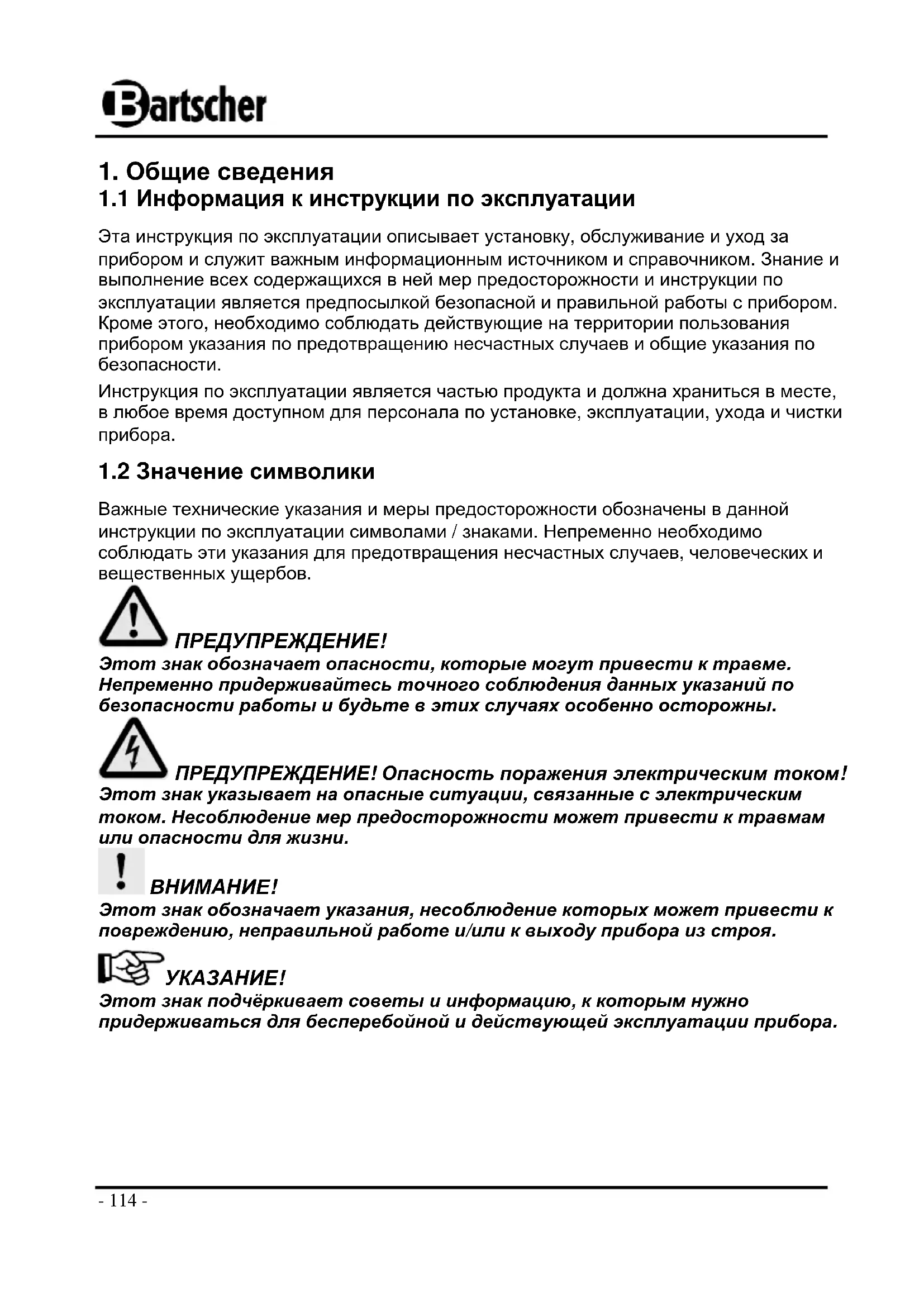 1.1 Информация к инструкции по эксплуатации ................................................. 114