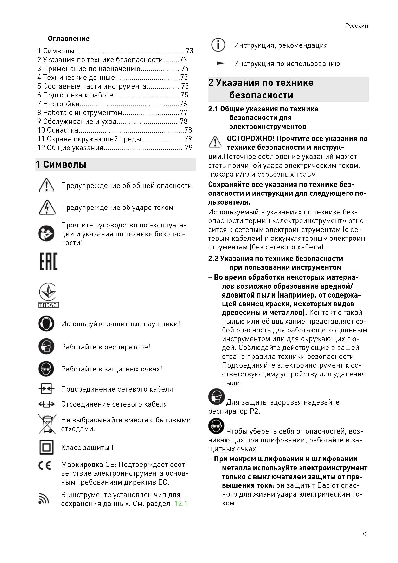 - 2 Указания по технике безопасности p. 73