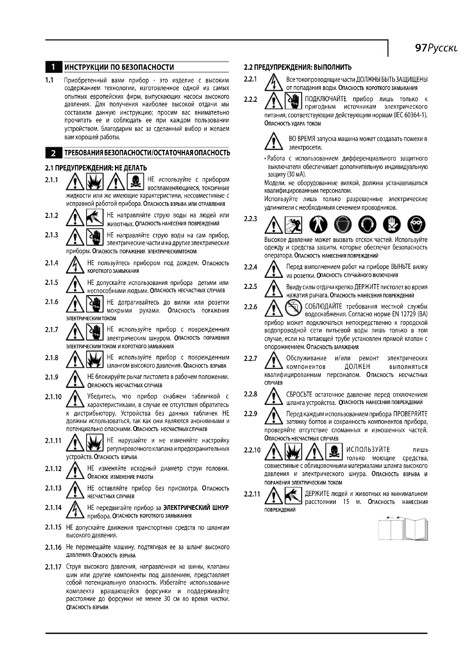 содержанием технологии, изготовленное одной из самых опытных европейских фирм, выпускающих насосы высокого давления. Для получения наиболее высокой отдачи мы составили данную инструкцию; просим вас внимательно прочитать ее и соблюдать ее при каждом пользовании устройством. Благодарим вас за сделанный выбор и желаем вам хорошей работы.