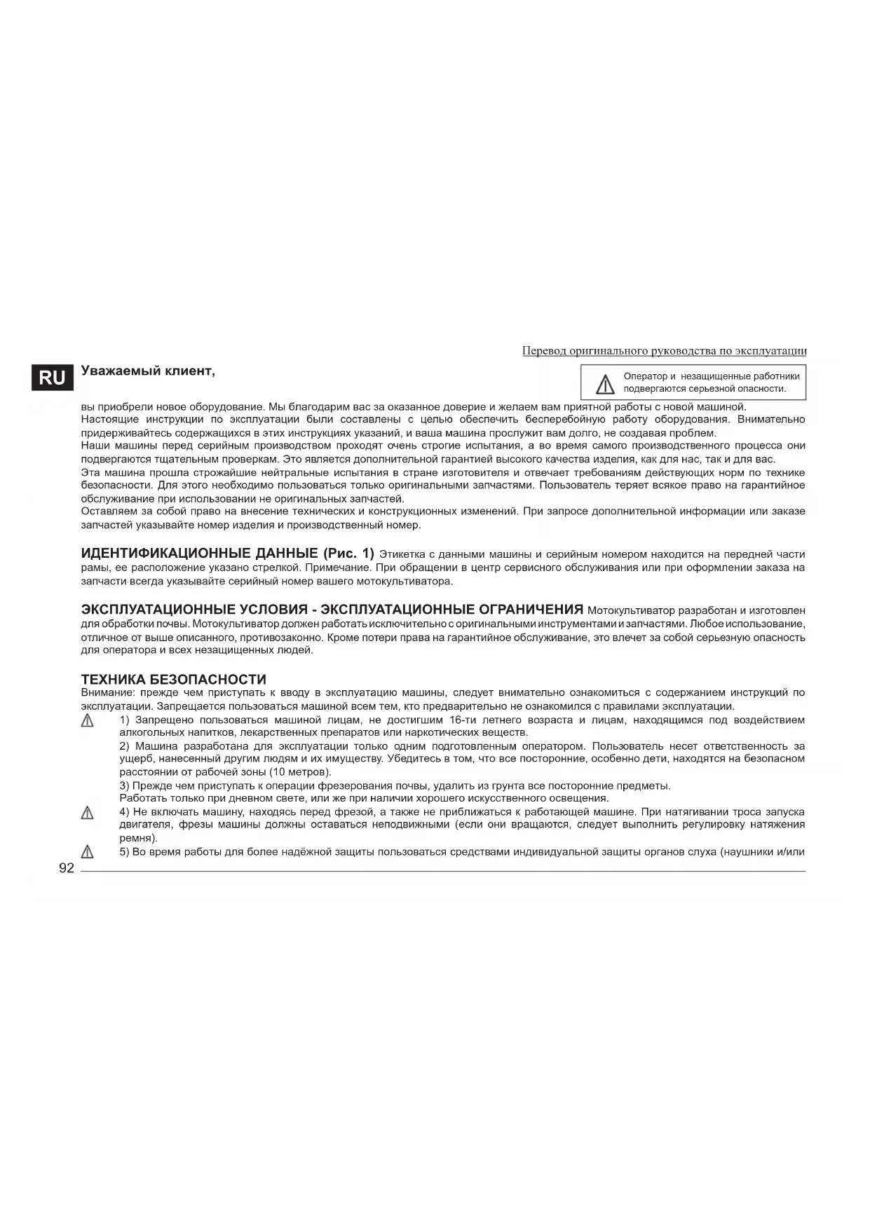 Оператор и незащищенные работники подвергаются серьезной опасности. Перевод оригинального руководства по эксплуатации93