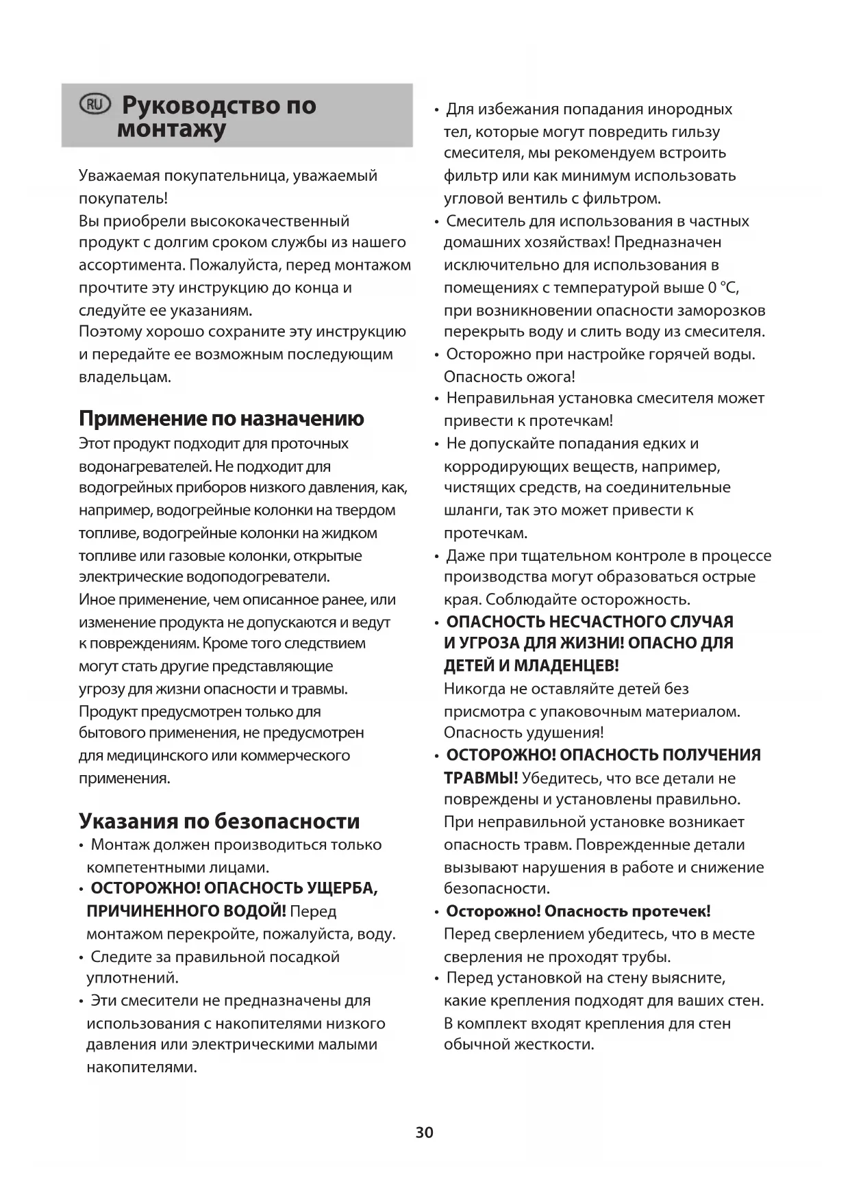 - OCTOPOXHO! ONACHOCTb yUeP6A, PnUHHeHHo BOdO! Npeed MOHTaXOM nepeKpOte, noXaNyIcTa, BODy.