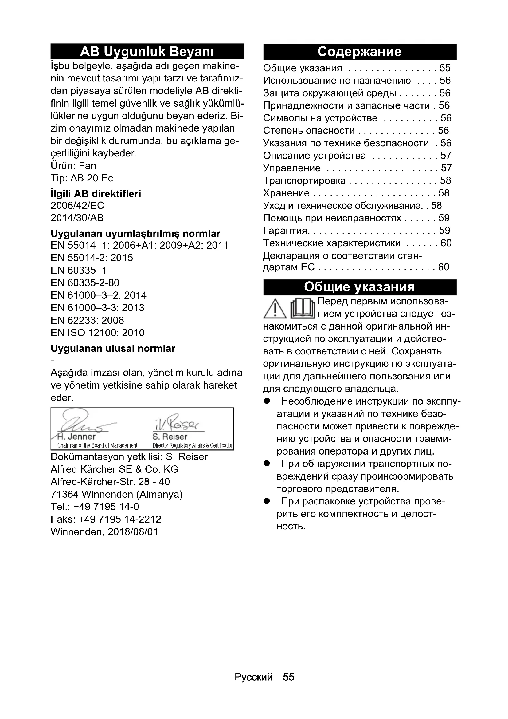 РУКОВОДСТВО ПОЛЬЗОВАТЕЛЯ AB 20 Ec Kärcher