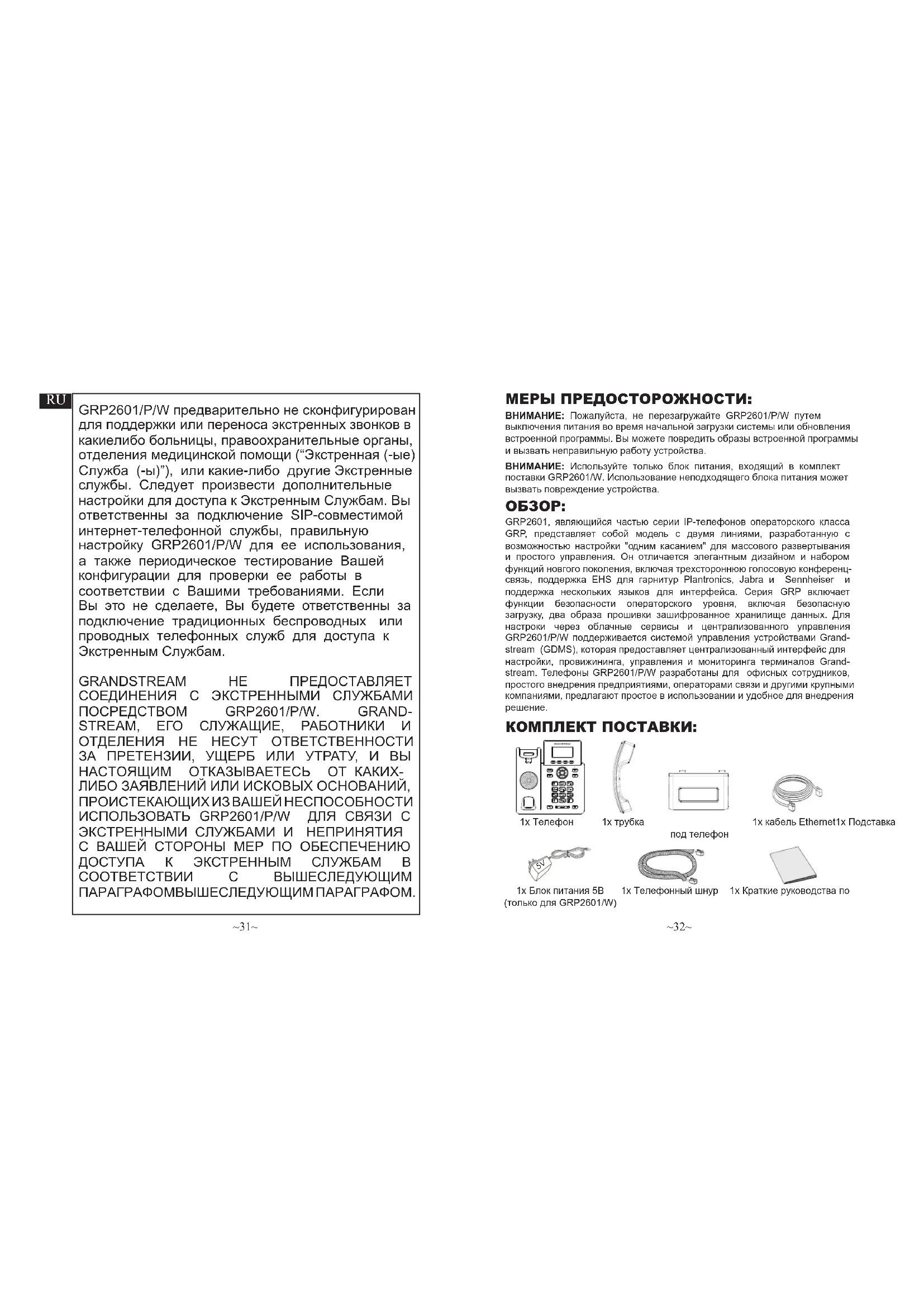 GRP2601 - IP стационарный телефон GRANDSTREAM - Бесплатное руководство пользователя