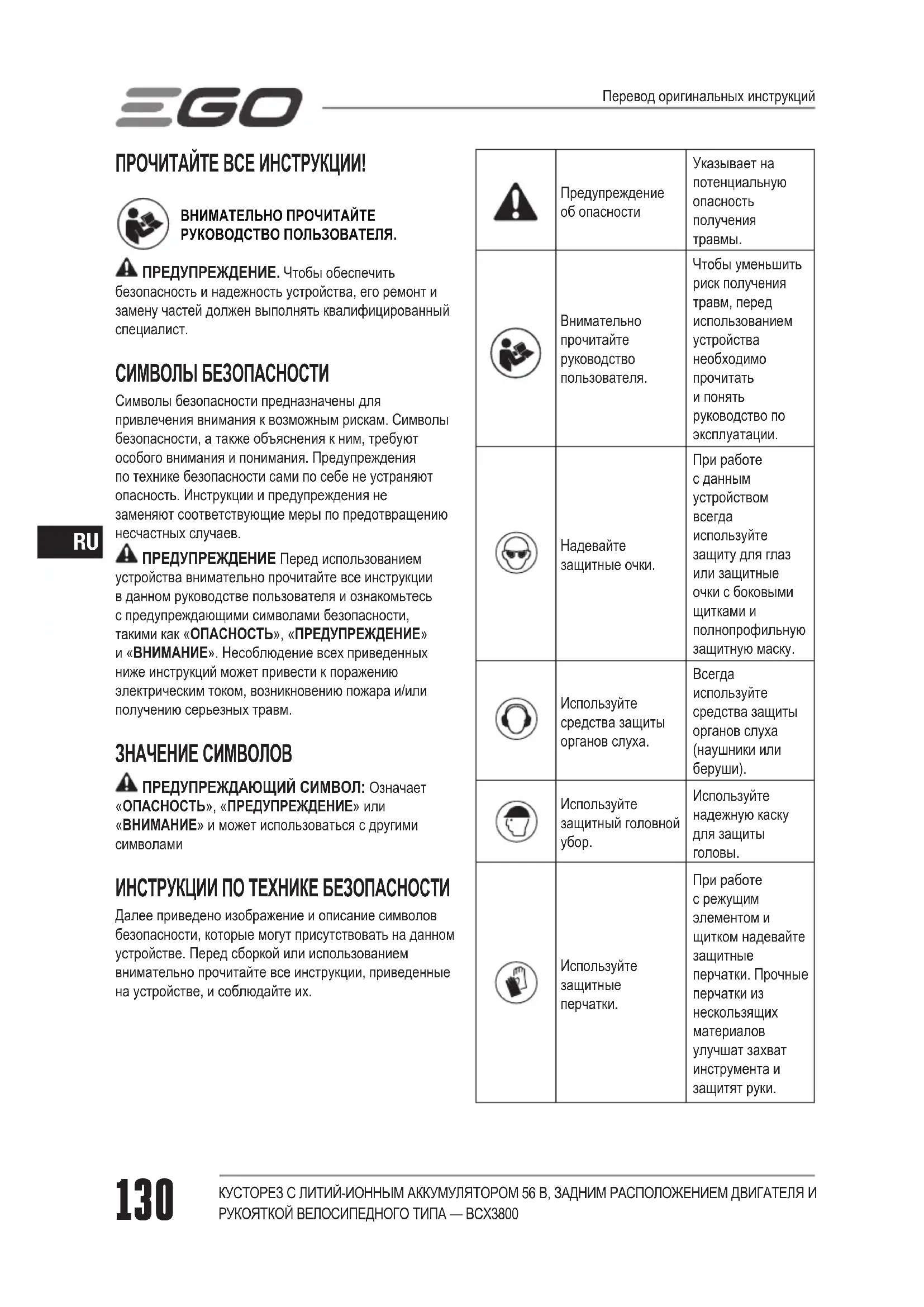 РУКОВОДСТВО ПОЛЬЗОВАТЕЛЯ BCX3800E EGO