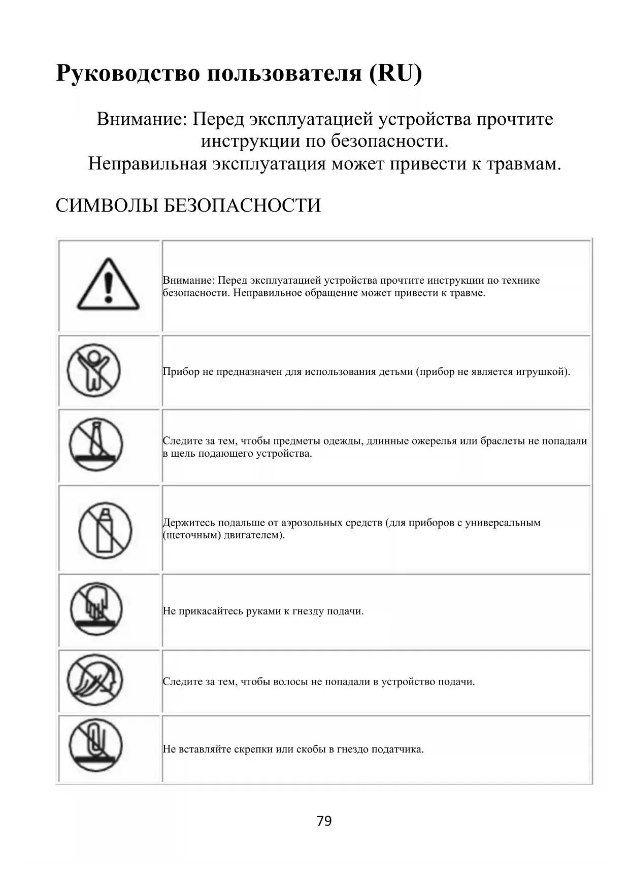 Следите за тем, чтобы волосы не попадали в устройство подачи.