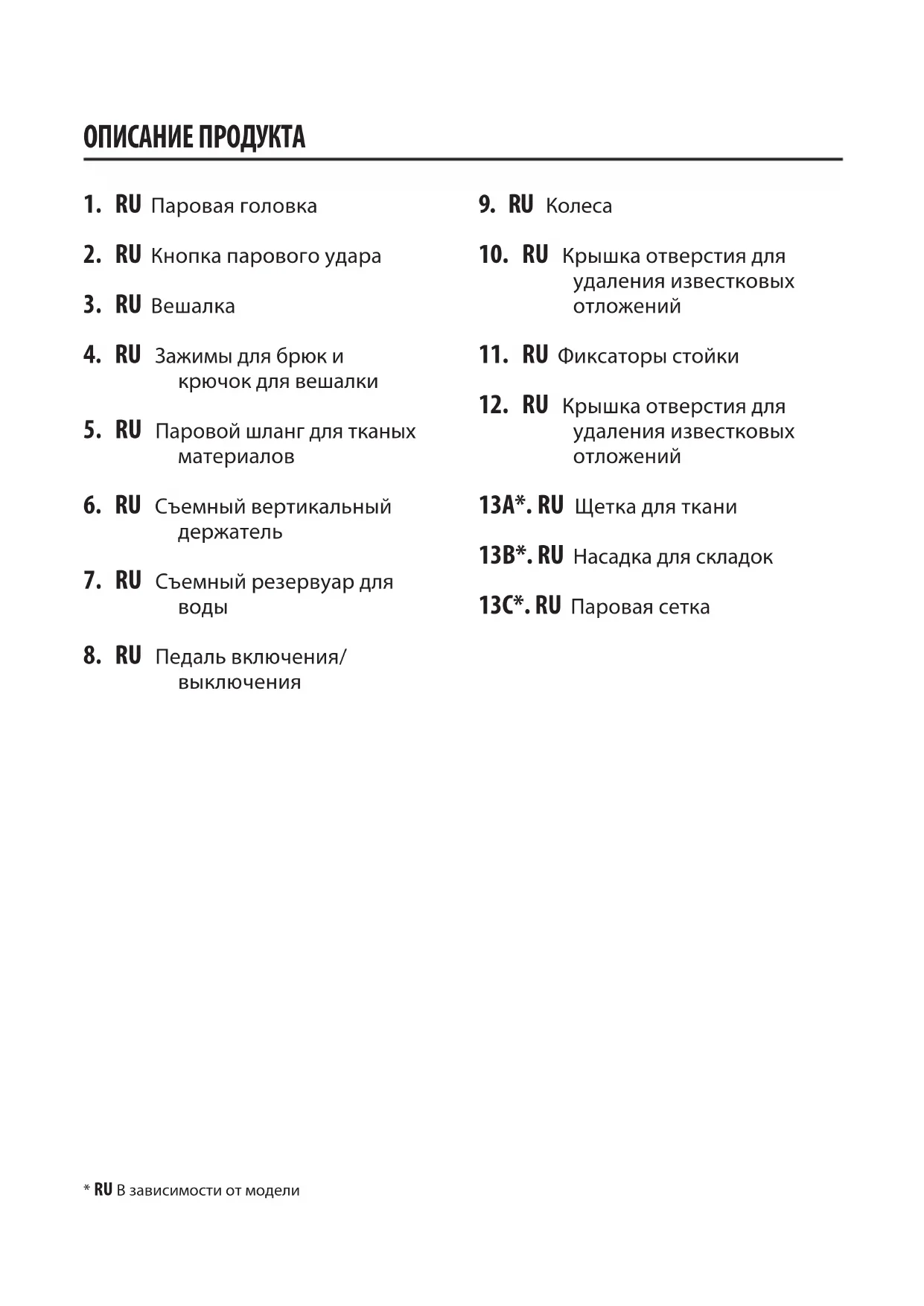 13A*. RU Щетка для ткани 13B*. RU Насадка для складок 13C*. RU Паровая сетка