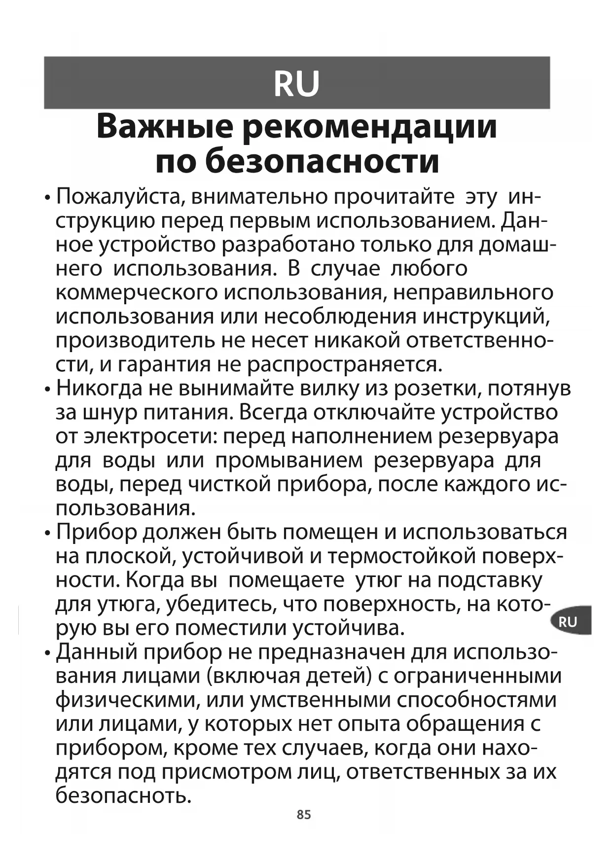 - Разрешается использовать утюг только с под- ставкой, которая предоставляется в комплекте (для беспроводных утюгов).