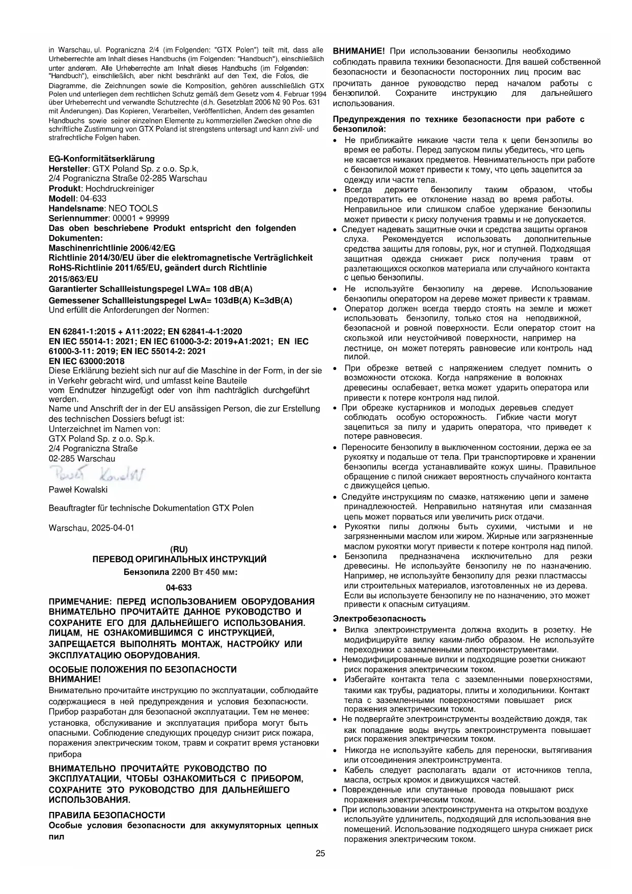 04633 - Пила NEO tools - Бесплатное руководство пользователя