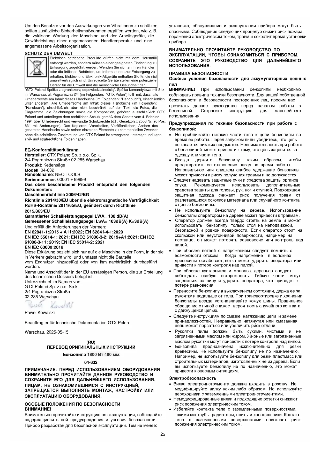 04632 - Пила NEO tools - Бесплатное руководство пользователя