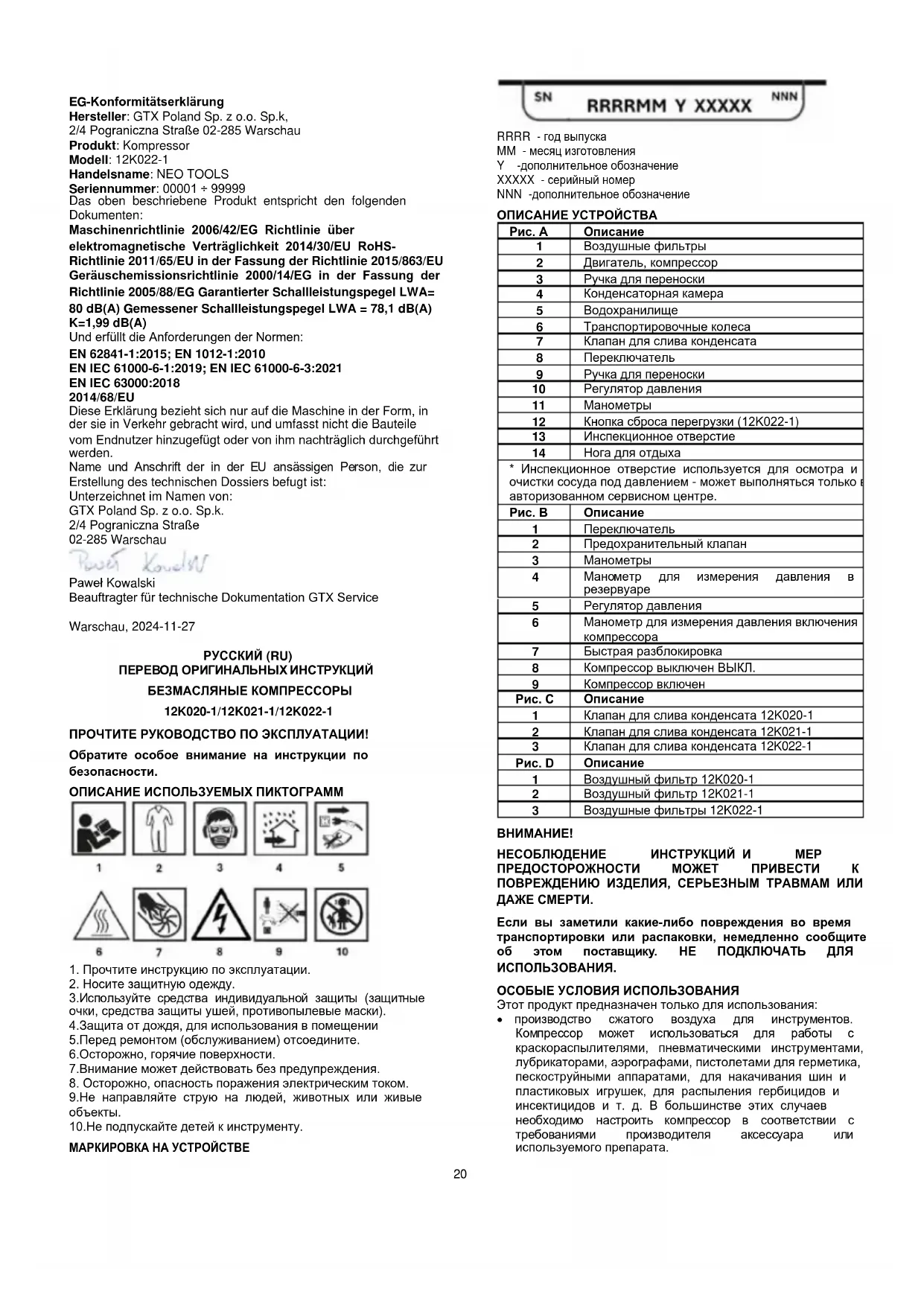 12K0211 - Компрессор NEO tools - Бесплатное руководство пользователя