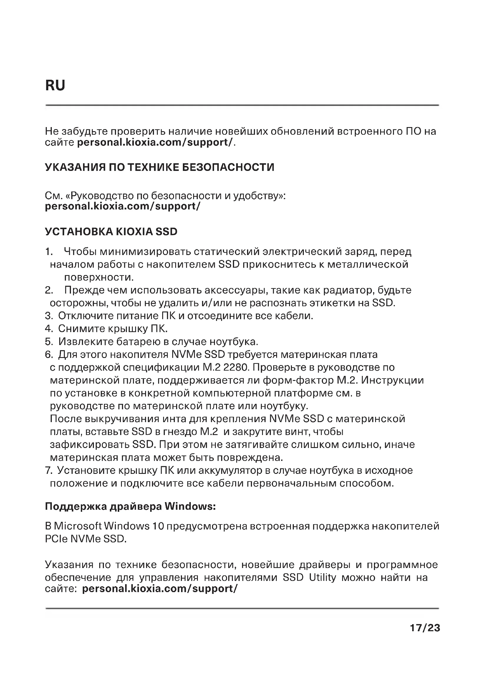 См. «Pyководъво по 6e3oэнocти и удобсту»: personal.kioxia.com/support/