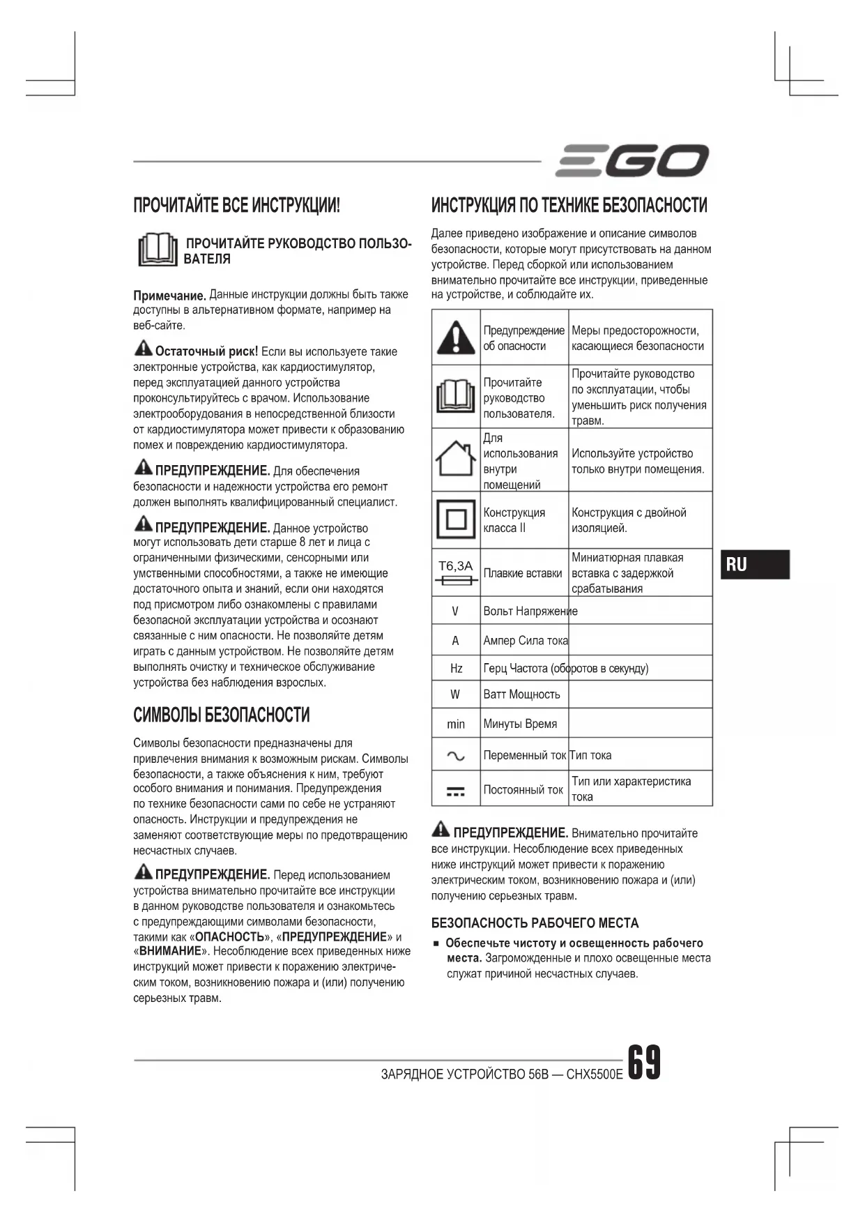 РУКОВОДСТВО ПОЛЬЗОВАТЕЛЯ CHX5500 EGO