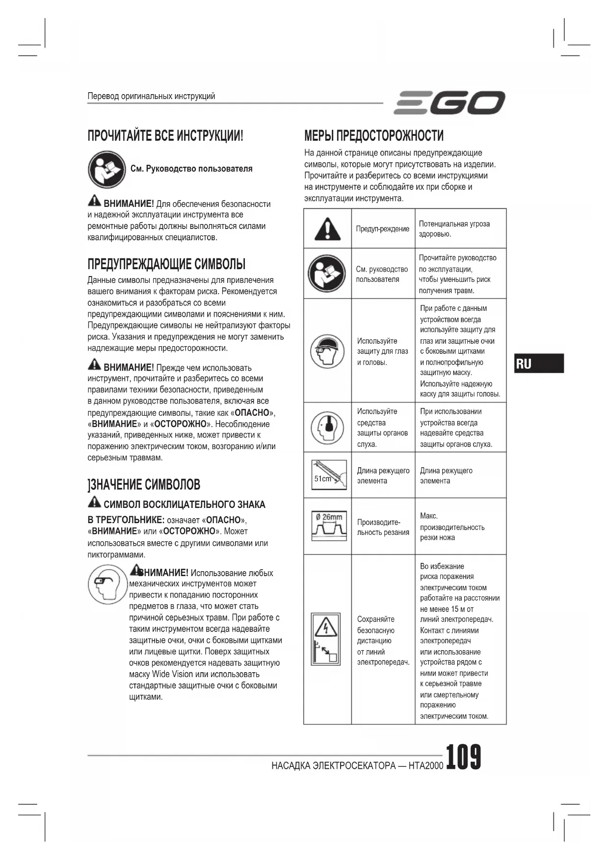 ГАРАНТИЙНАЯ ПОЛИТИКА EGO Посетите веб-сайт egopowerplus.eu, чтобы ознакомиться со всеми условиями и сроками гарантийной политики EGO.KOŃCÓWKA NOŻYCE DO ŻYWOPŁOTU — HTA2000