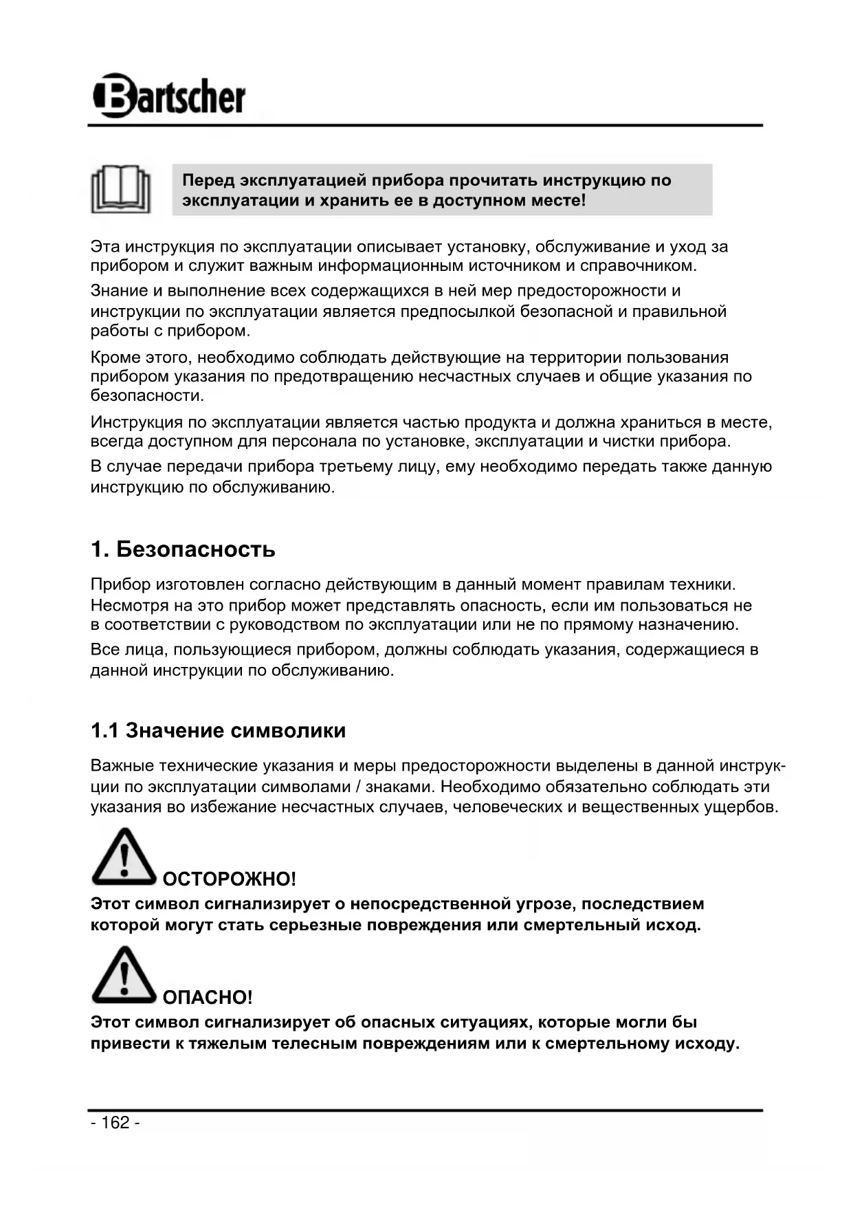 РУКОВОДСТВО ПОЛЬЗОВАТЕЛЯ BW170D BARTSCHER