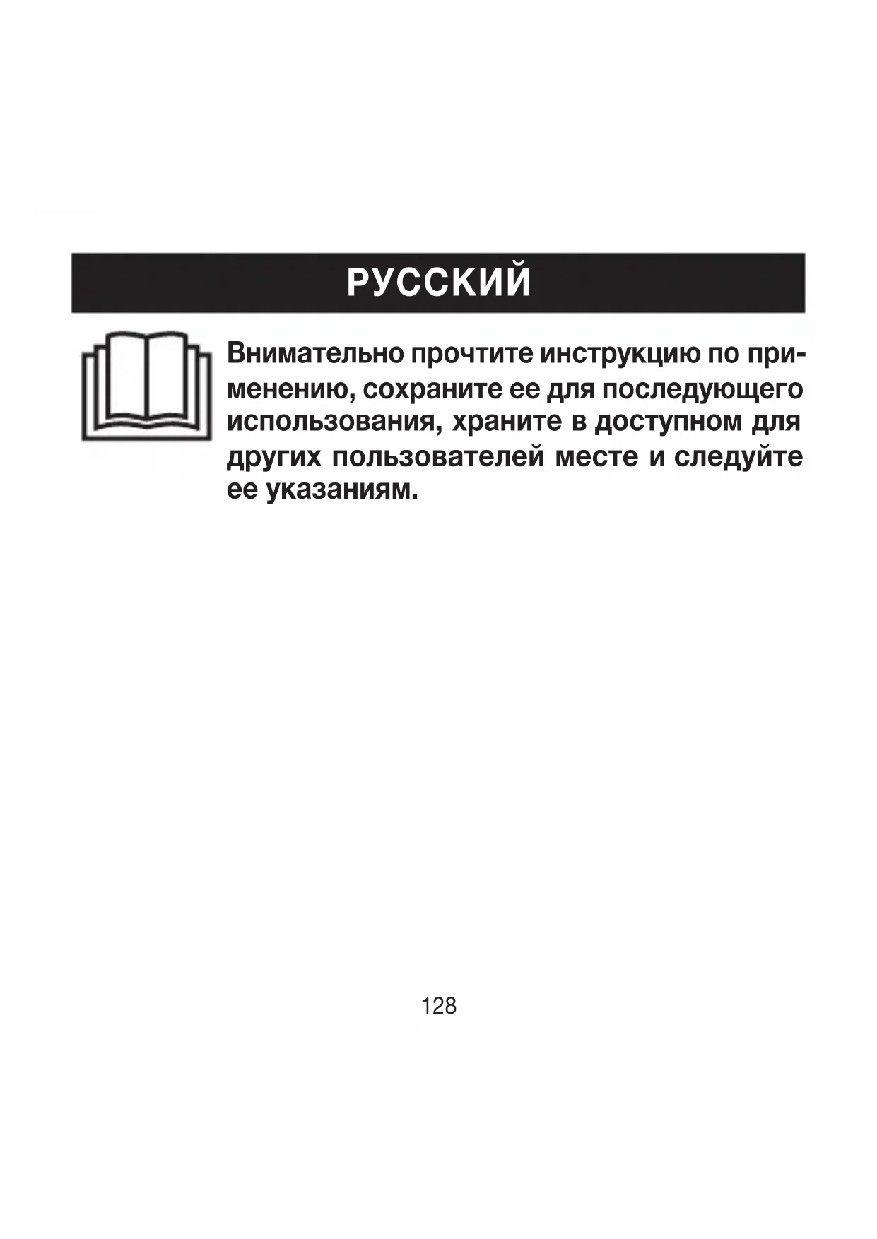 Важная информация. Соблюдайте инструкцию поприменению.134 Изготовитель. Утилизация прибора в соответствии с директивой ЕСпоотходам электрического иэлектронного оборудо- вания— WEEE (Waste Electrical and Electronic Equipment). Применяйте только взакрытых помещениях. Прибор имеет двойную защитную изоляцию исоответ- ствует классу защиты2. IP20 Защита от проникновения твердых тел диаметром 12,5мм иболее.