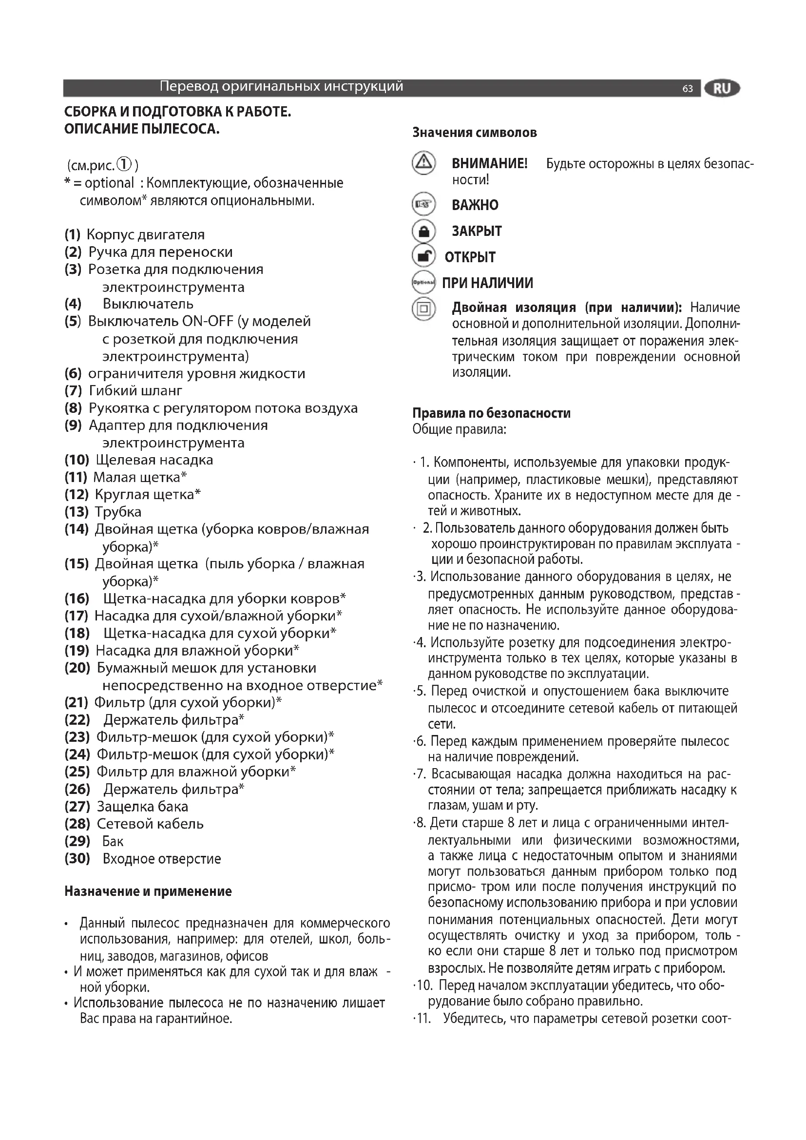 - Использование пылесоса не по назначению лишает Вас права на гарантийное. 63ветствуют параметрам оборудования