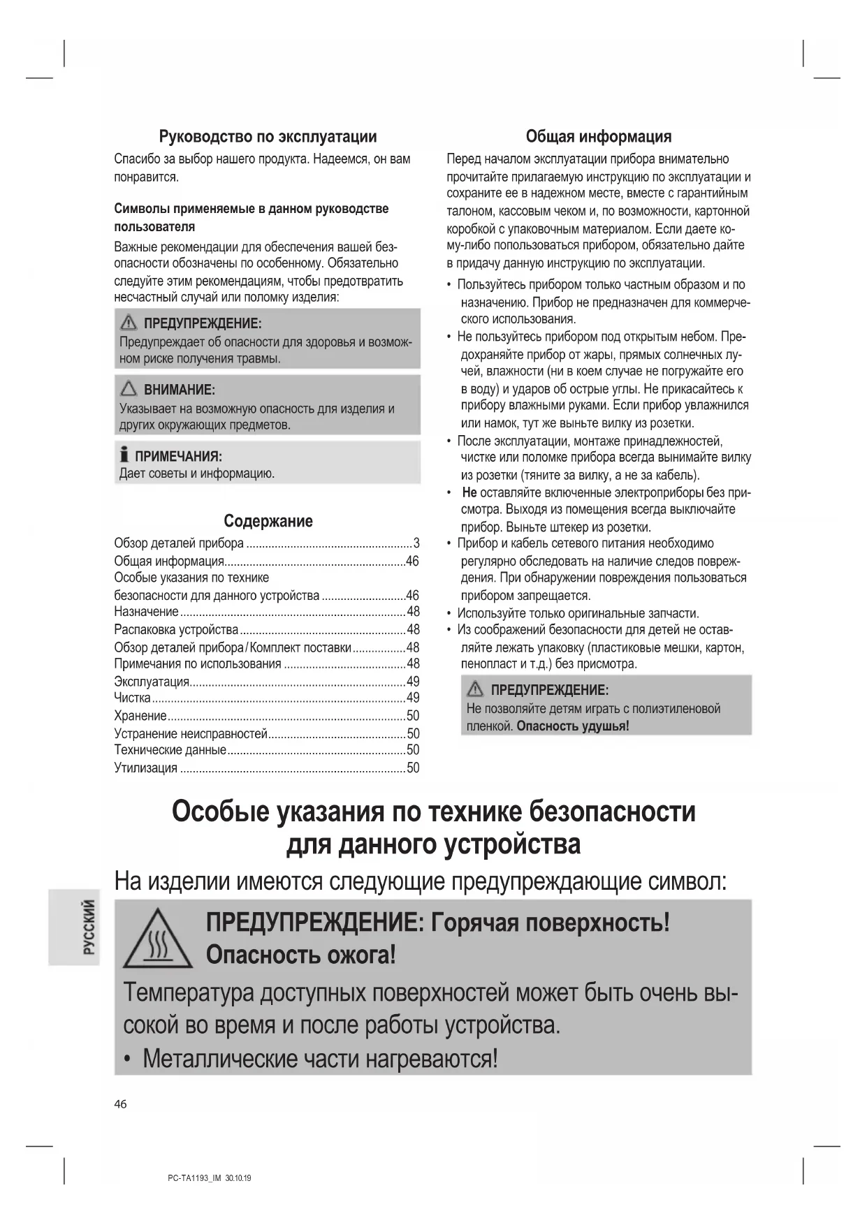 - Металлические части нагреваются!PC-TA1193_IM 30.10.19