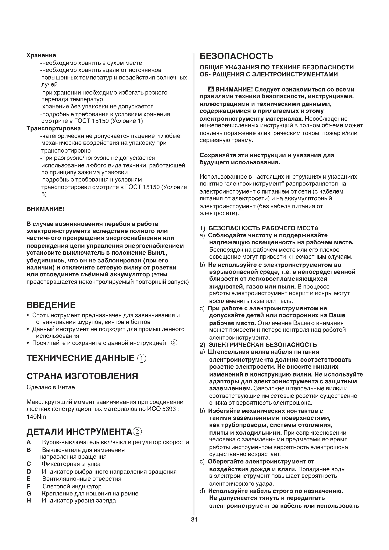 -Донустимая Temпература Okружаюшени среды (Инстумент/зарядноустю/aKKумлготор): -при зарядке 4...40°C -при зацни -20...+50°C -прихаени -20...+50°C