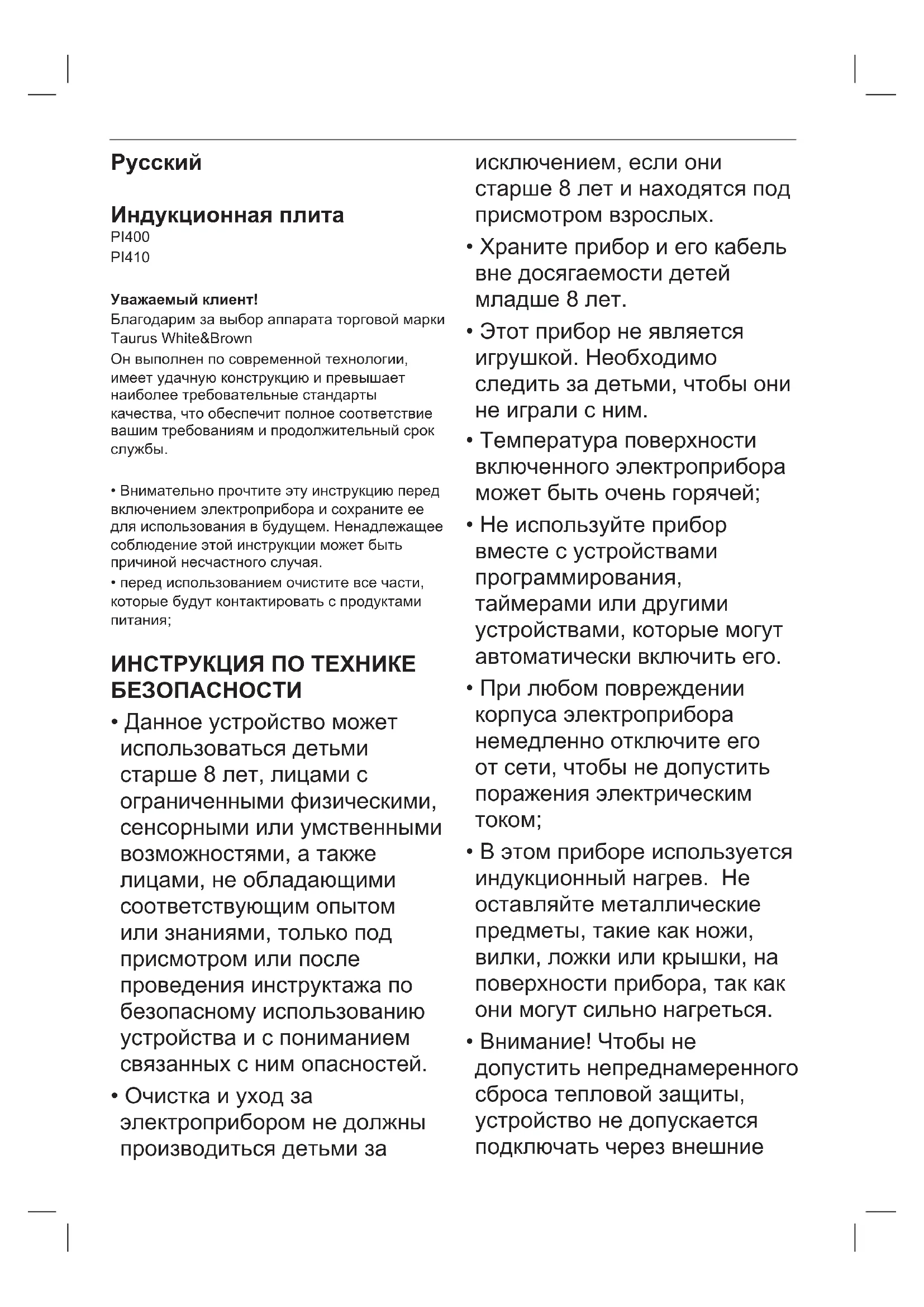 Скачайте инструкцию для вашего плита в формате PDF бесплатно! Найдите своё руководство PI 400 - TAURUS и возьмите своё электронное устройство обратно в руки. На этой странице опубликованы все документы, необходимые для использования вашего устройства. PI 400 бренда TAURUS.