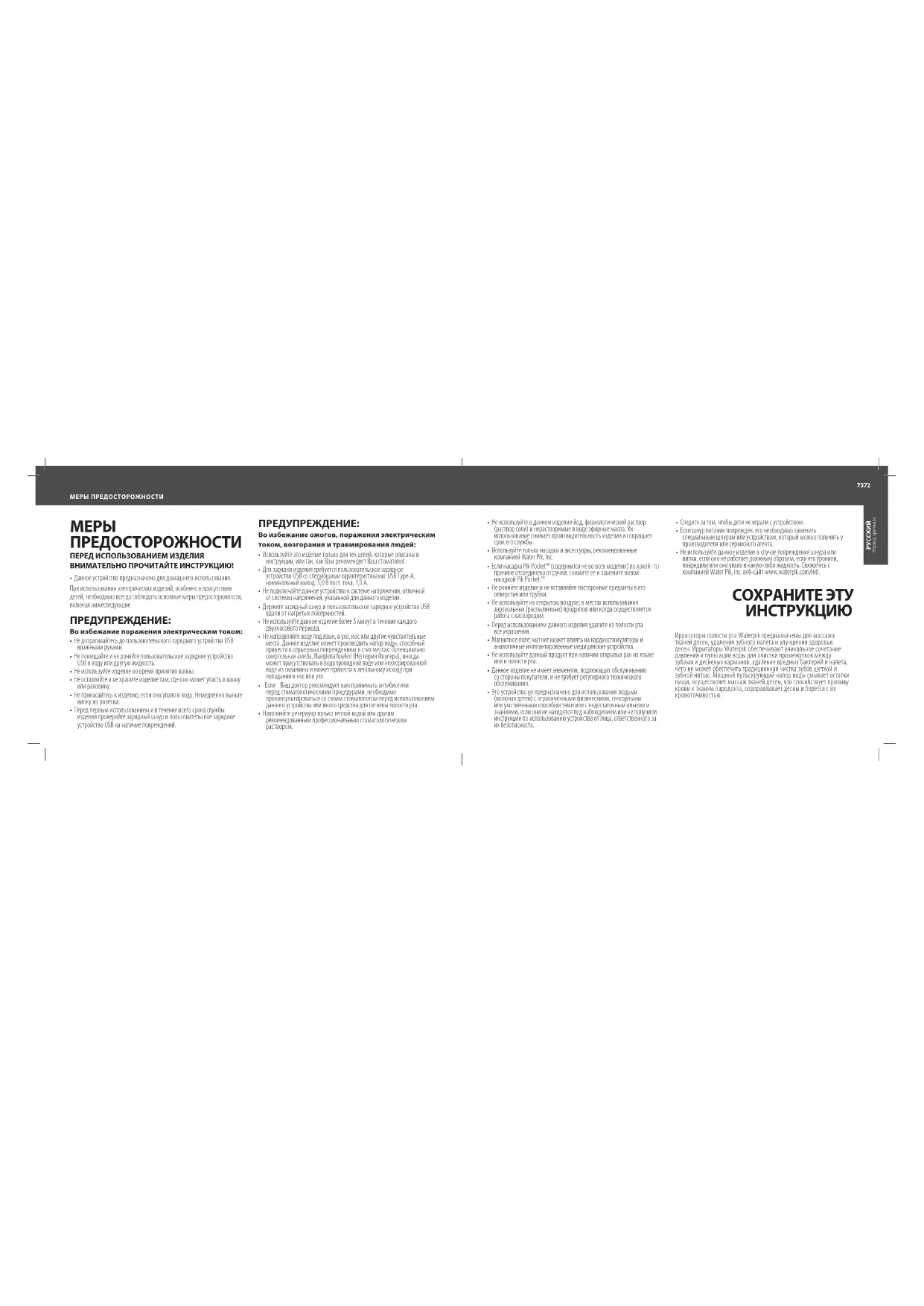 - Данное устройство предназначено для домашнего использования. При использовании электрических изделий, особенно в присутствии детей, необходимо всегда соблюдать основные меры предосторожности, включая нижеследующие. ПРЕДУПРЕЖДЕНИЕ: Во избежание поражения электрическим током:
