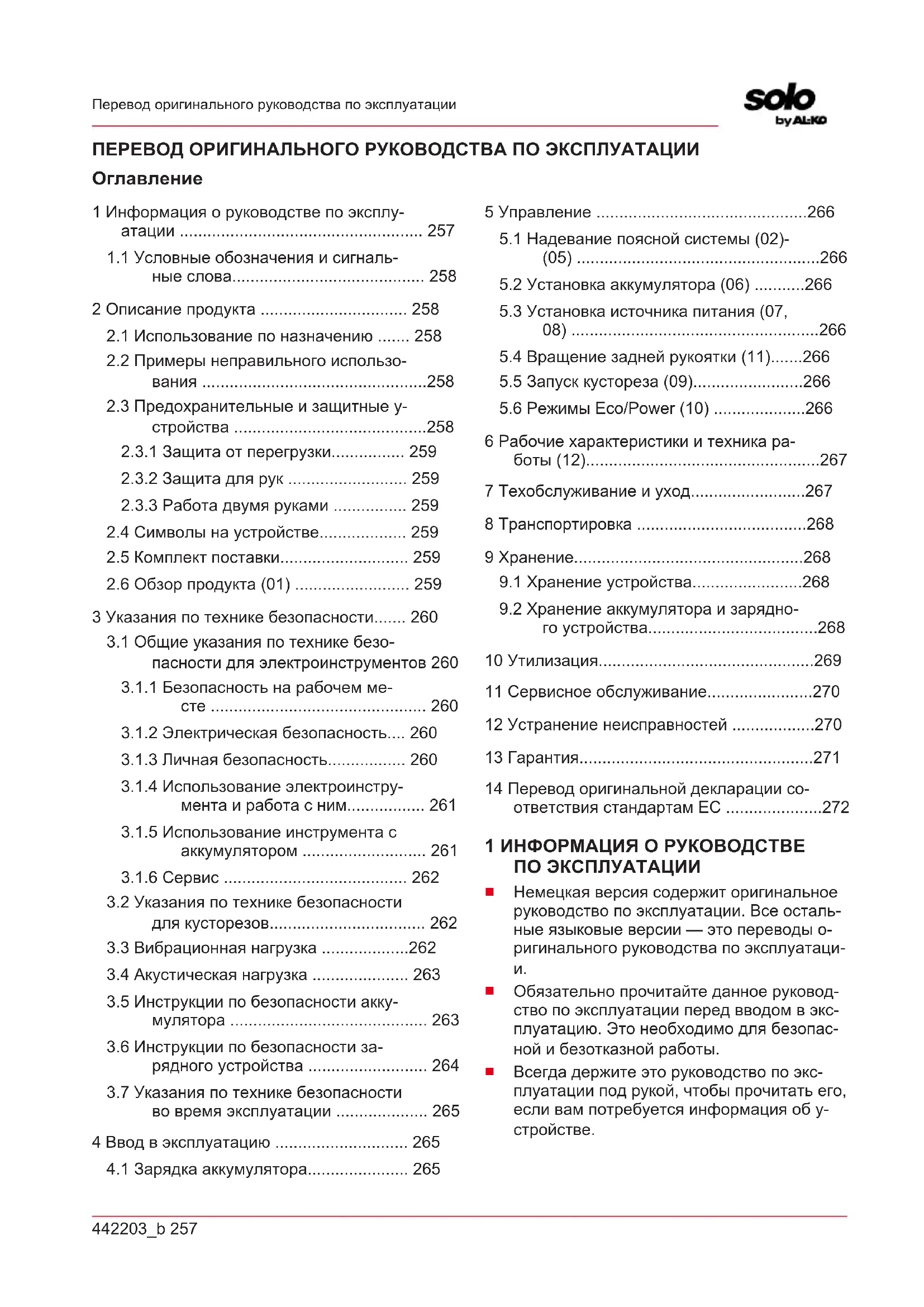 1 Информация о руководстве по эксплу- атации ..................................................... 257