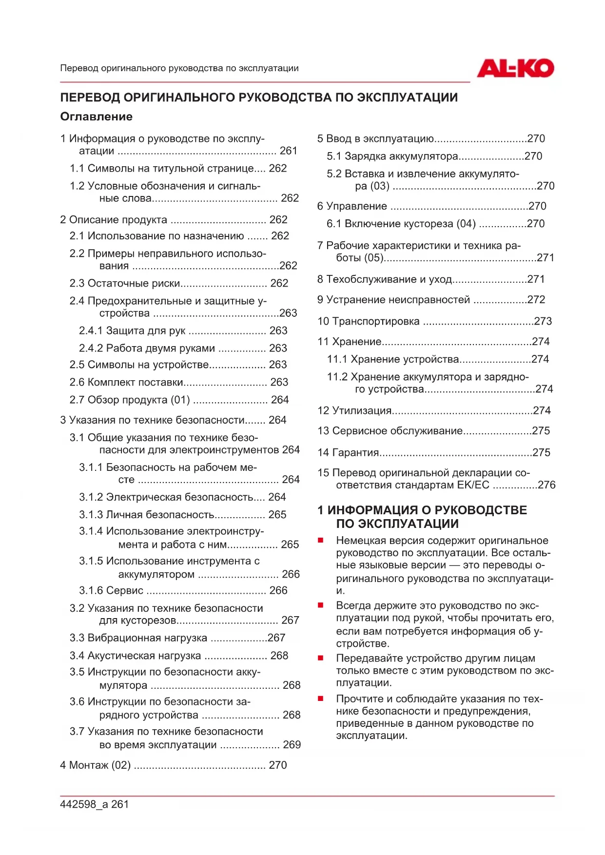 1 Информация о руководстве по эксплу- атации ..................................................... 261