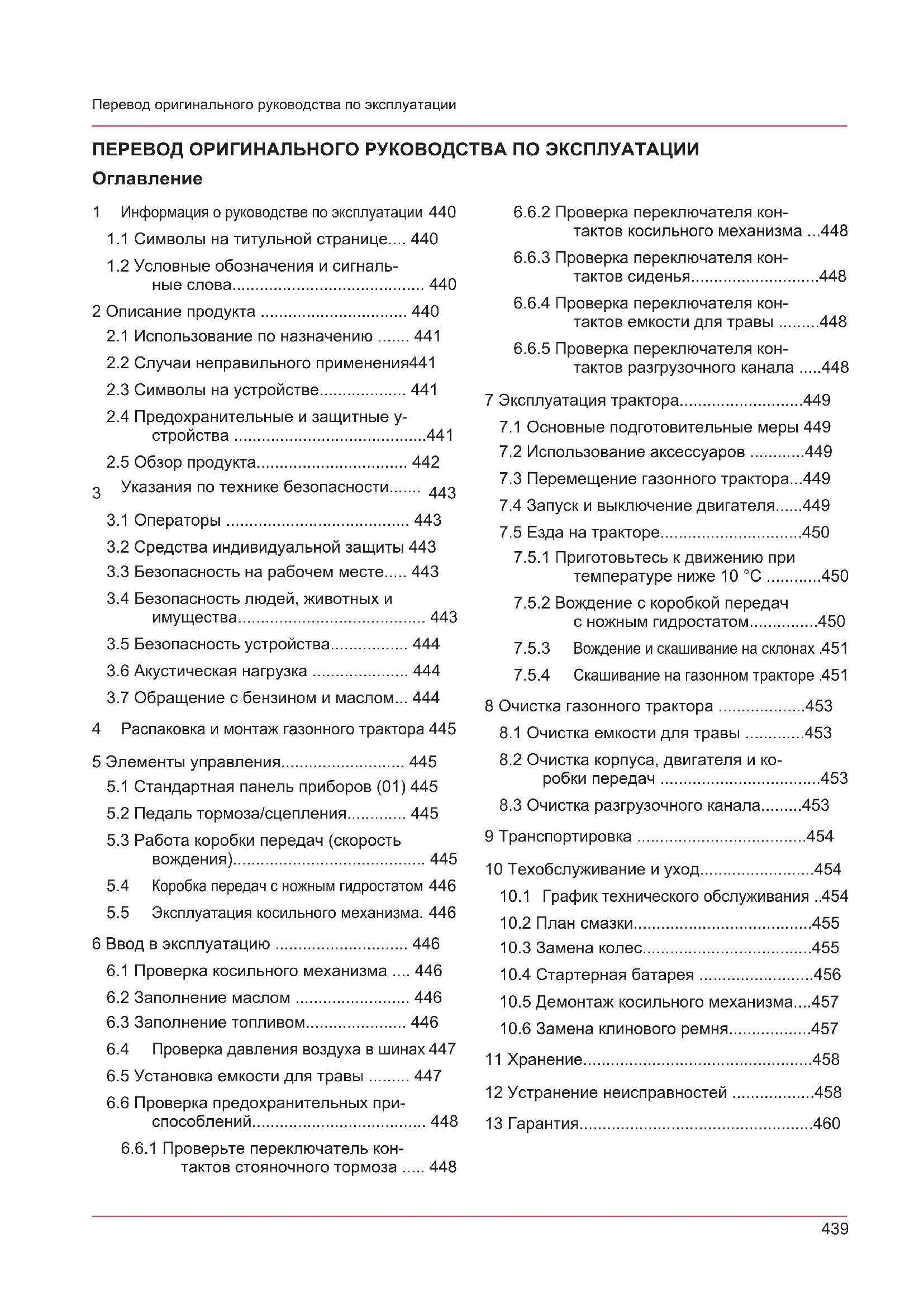 7.3 Перемещение газонного трактора...449