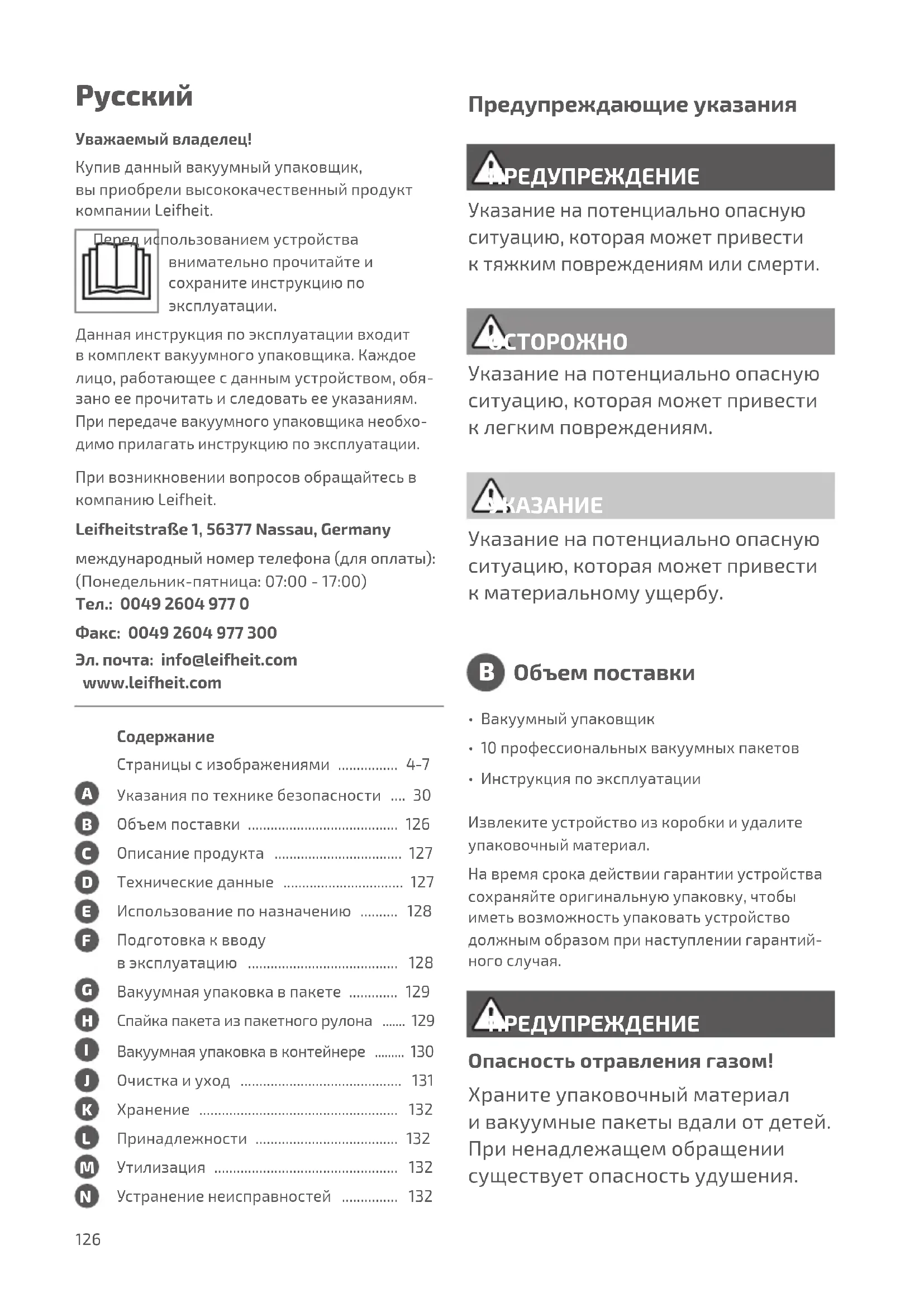 Уважаемый владелец! Купив данный вакуумный упаковщик, вы приобрели высококачественный продукт компании Leifheit. Перед использованием устройства внимательно прочитайте и сохраните инструкцию по эксплуатации. Данная инструкция по эксплуатации входит в комплект вакуумного упаковщика. Каждое лицо, работающее с данным устройством, обя