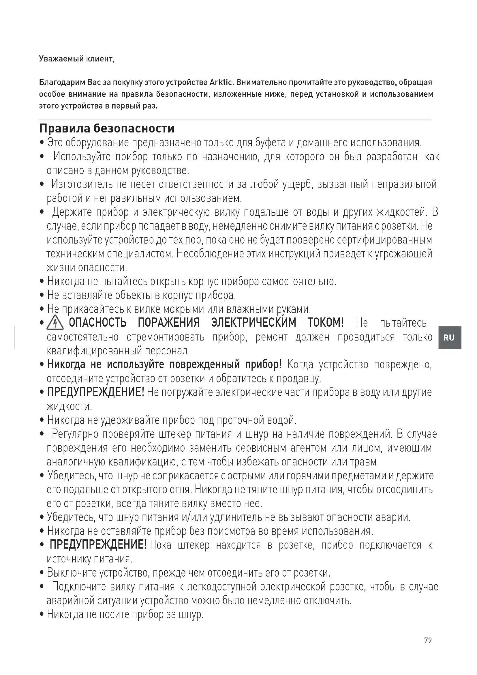Уважаемый клиент, Благодарим Вас за покупку этого устройства Arktic. Внимательно прочитайте это руководство, обращая особое внимание на правила безопасности, изложенные ниже, перед установкой и использованием этого устройства в первый раз. Правила безопасности