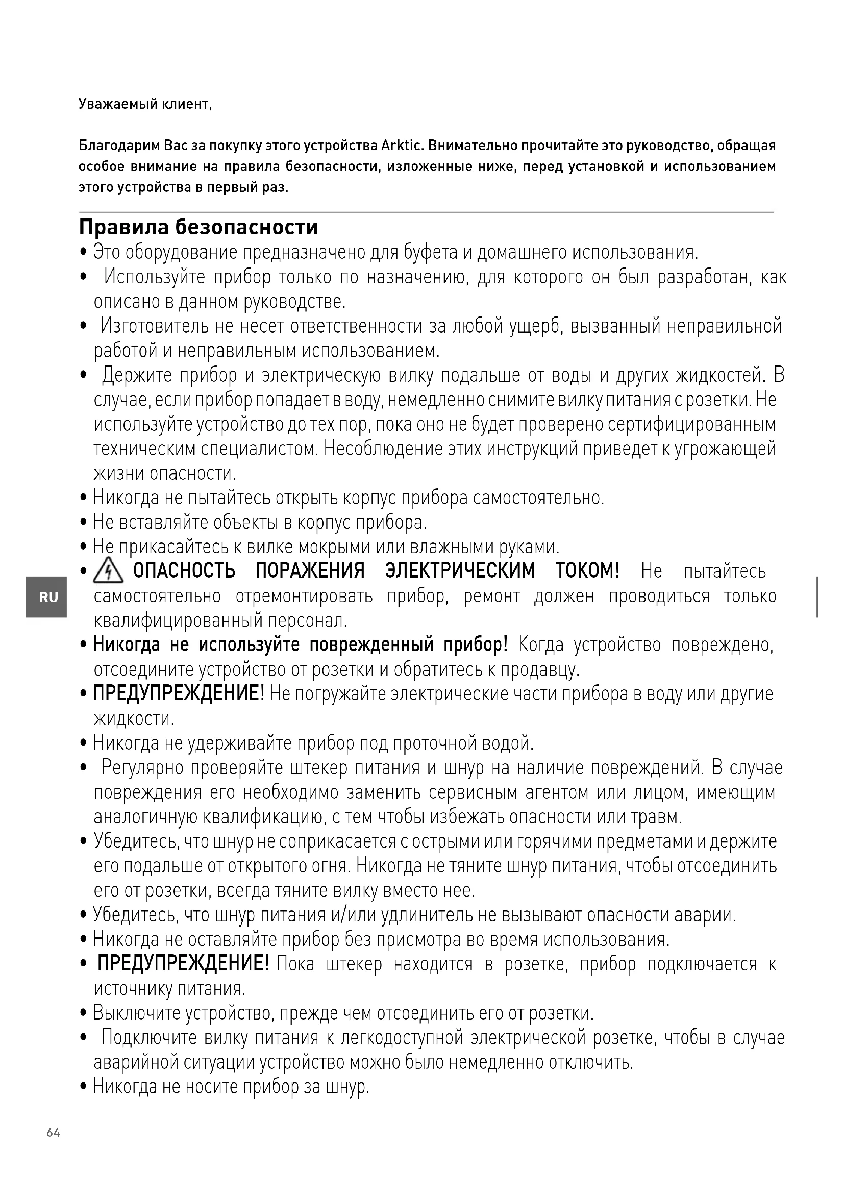 Уважаемый клиент, Благодарим Вас за покупку этого устройства Arktic. Внимательно прочитайте это руководство, обращая особое внимание на правила безопасности, изложенные ниже, перед установкой и использованием этого устройства в первый раз. Правила безопасности