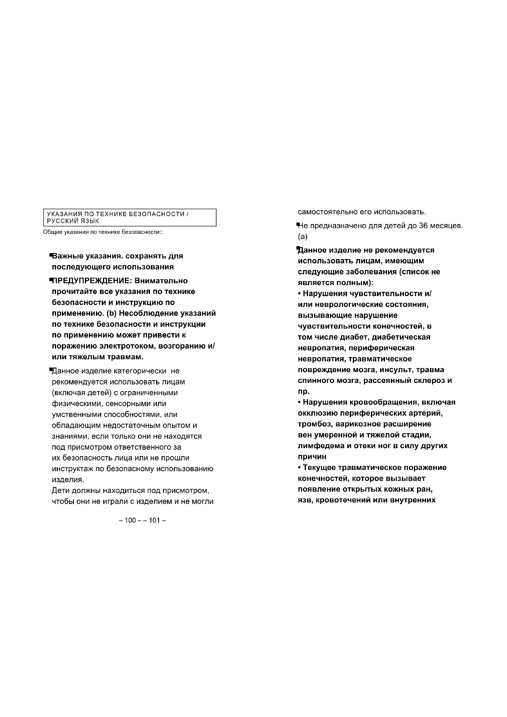 УКАЗАНИЯ ПО ТЕХНИКЕ БЕЗОПАСНОСТИ / РУССКИЙ ЯЗЫК 100