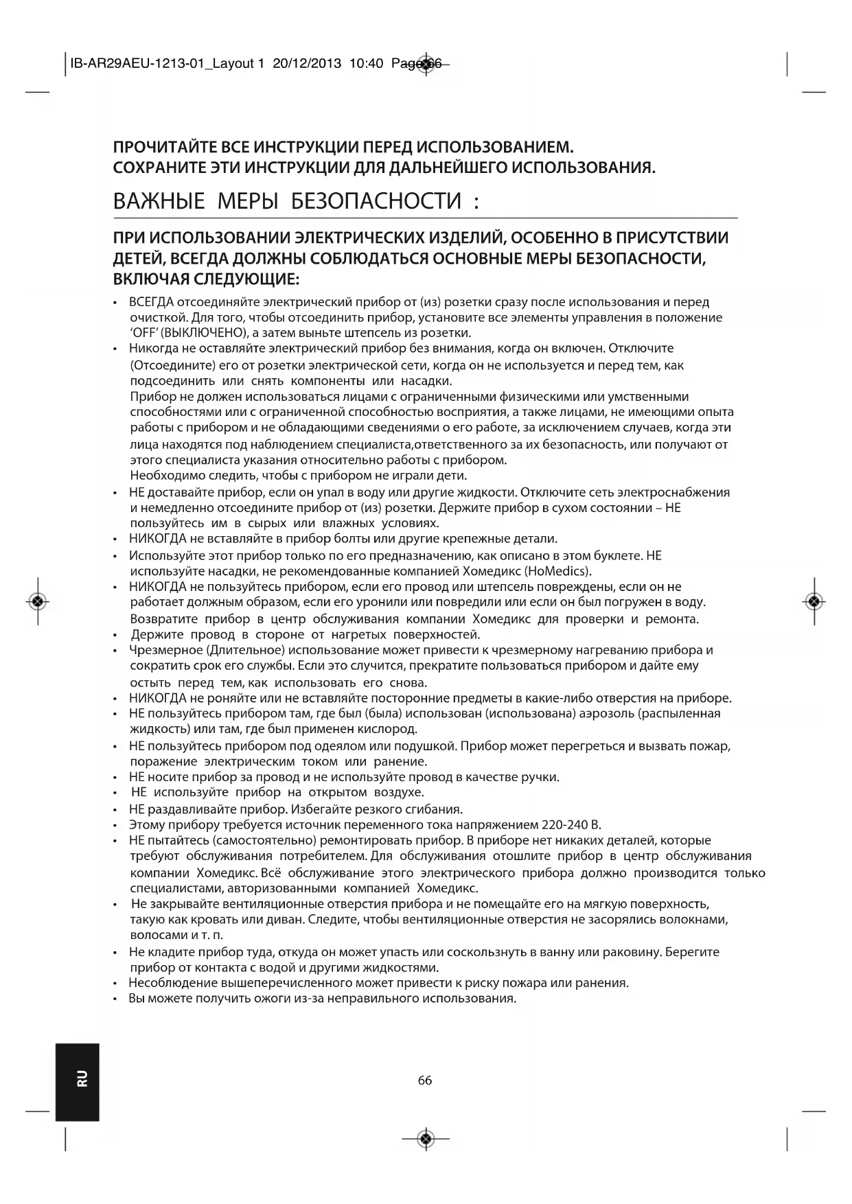 - Вы можете получить ожоги из-за неправильного использования. IB-AR29AEU-1213-01_Layout 1 20/12/2013 10:40 Page 6667