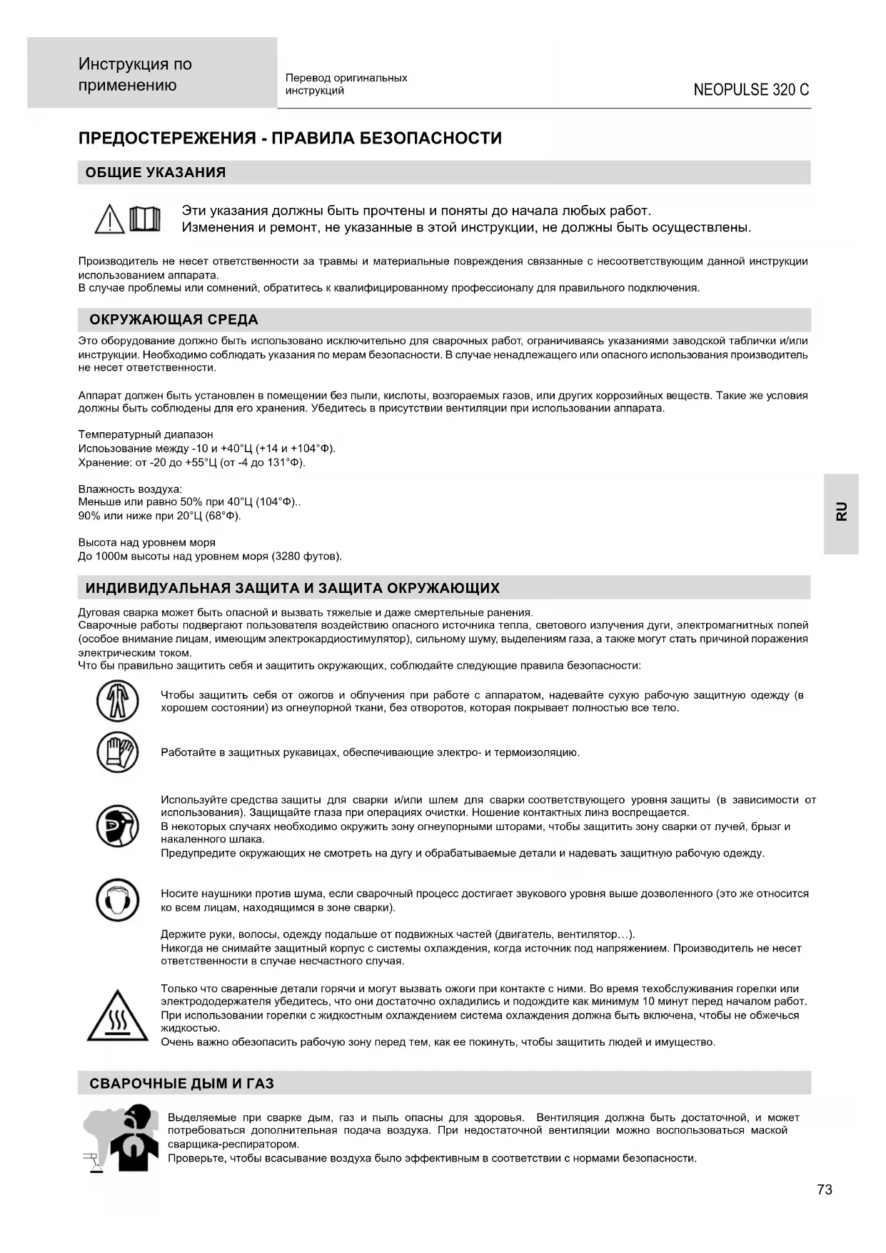 РУКОВОДСТВО ПОЛЬЗОВАТЕЛЯ Neopulse 320 C GYS