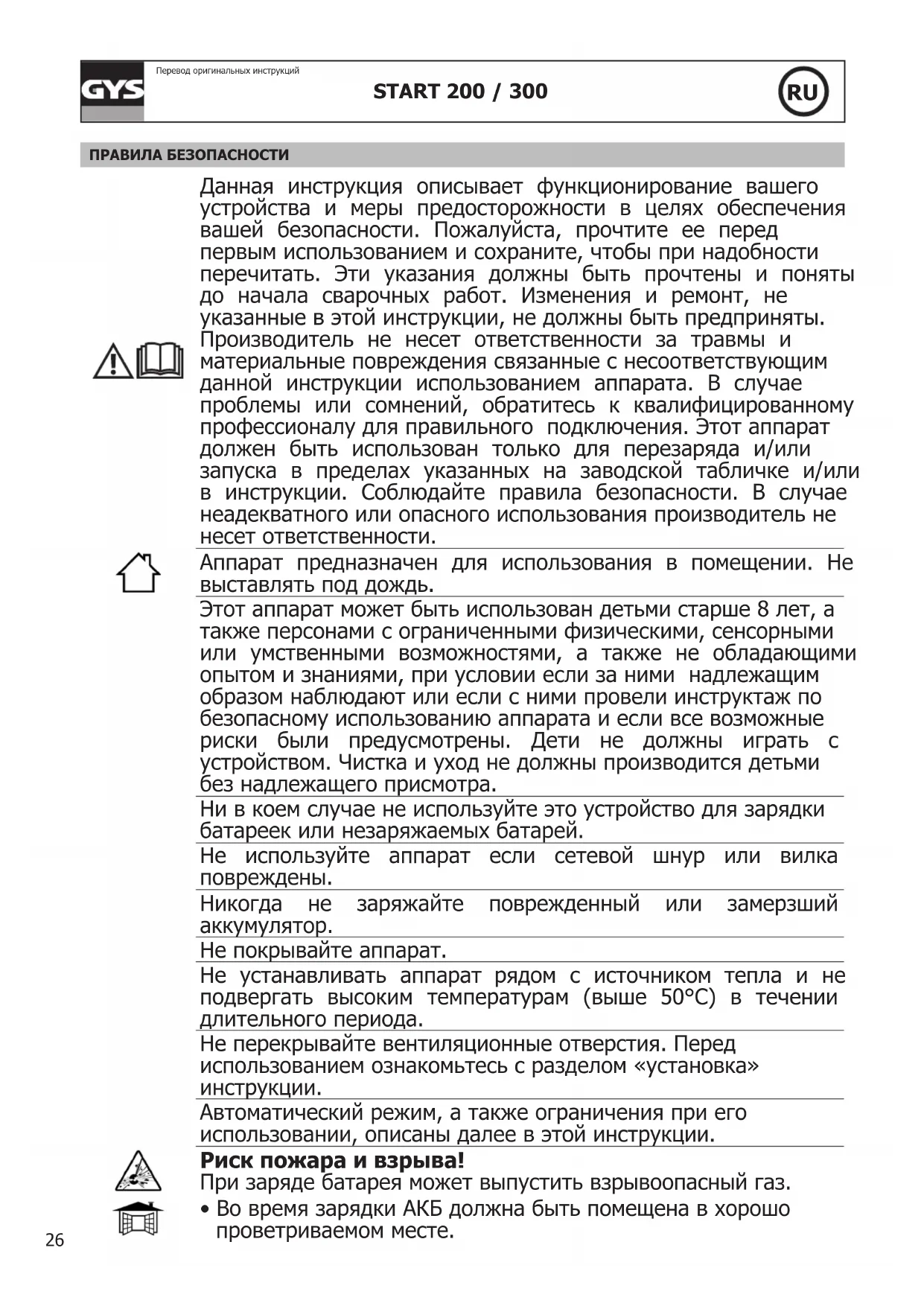 РУКОВОДСТВО ПОЛЬЗОВАТЕЛЯ Start 200 GYS