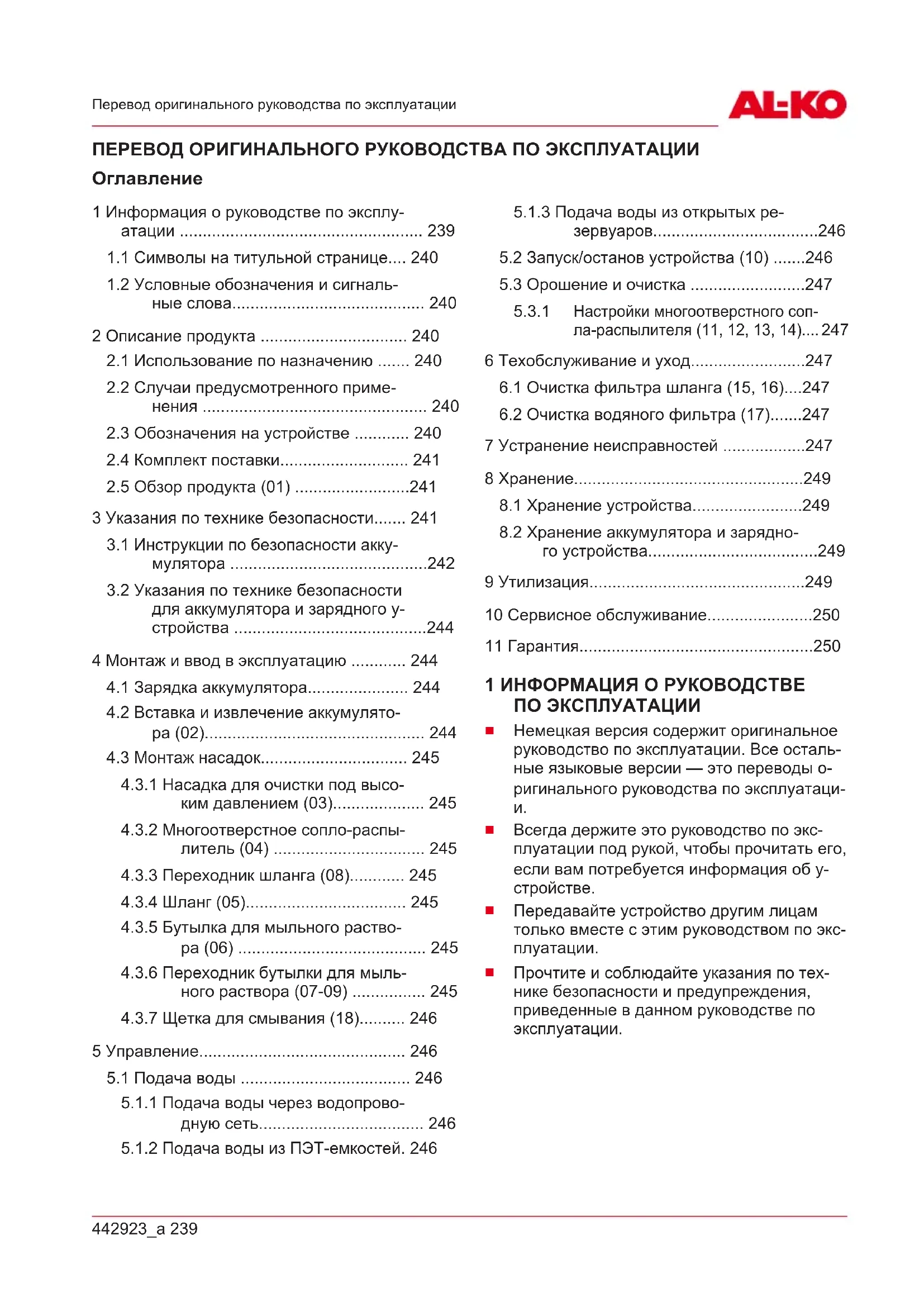 1 Информация о руководстве по эксплу- атации ..................................................... 239