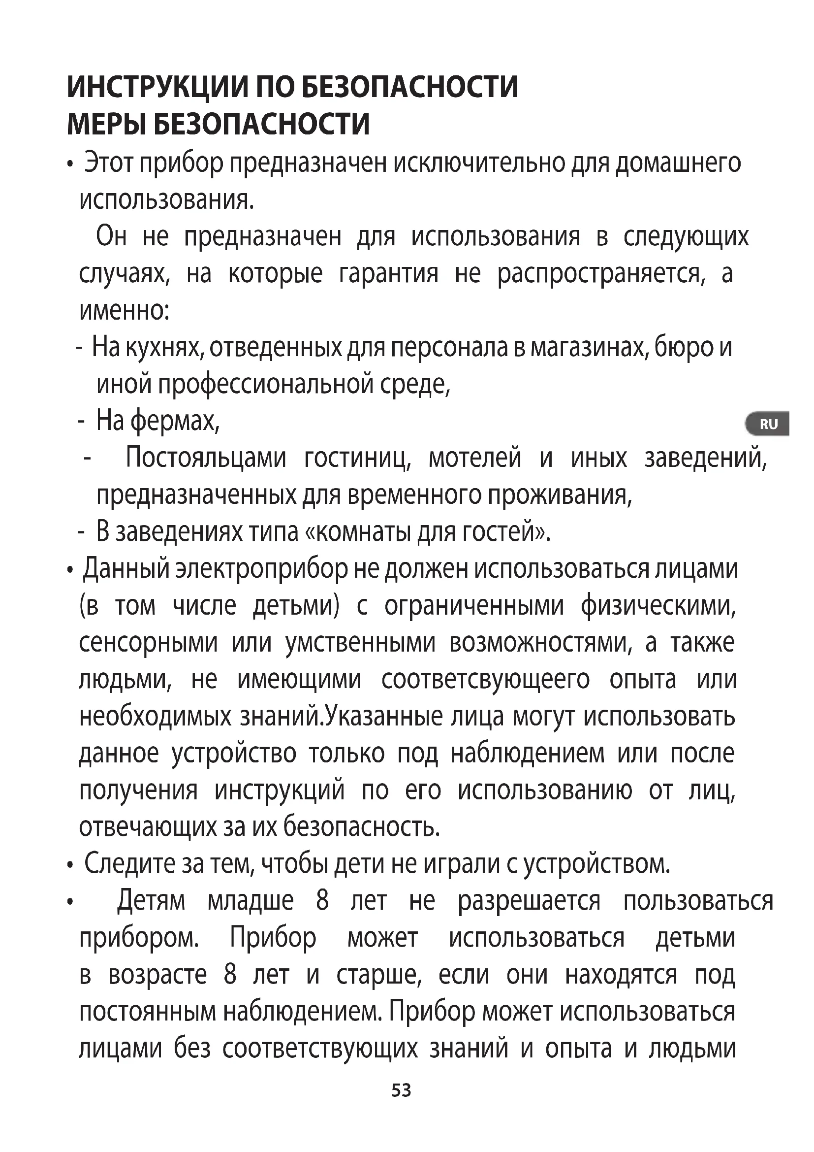 C OrpaHnueHHbIMN Φn3nueCKnMn, CeHCOPHbIMN nIyUmCTBeHHbIMN CnOCo6HOCTaMn, eCnIHX npOHnCTpyKtnpOBaII N o pa6Ote C np6Opom, n OHN 3HaOT O BO3MOxHbIX pNcKaX. XpaHnTe np6Op n CTeBOJ shHyp B MeCTe, HeNoCTynHom dIy JeTeMnaDl8 let. OUnCTky n ObcnyxBaHne np6opa DOJxHbIO CyUeCTBnTb TOnbKO B3PoCblie.