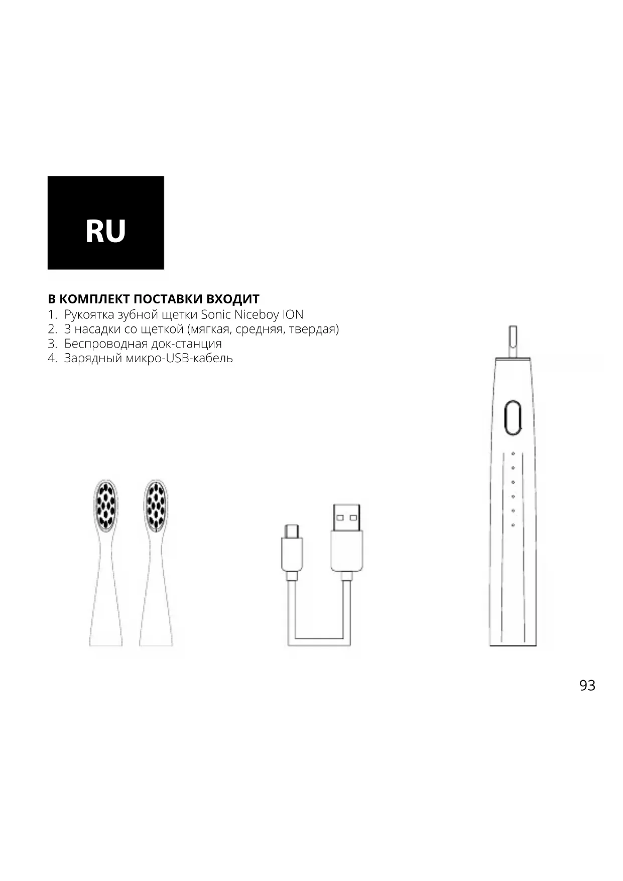- Зубная щетка Niceboy ION Sonic удовлетворяет требованиям безопасности, предъявляемым к электромагнитным устройствам. Если Вы используете кардиостимулятор или иное имплантированное устройство, перед использованием щетки Niceboy ION Sonic обратитесь к Вашему врачу или к изготовителю имплантированного устройства.