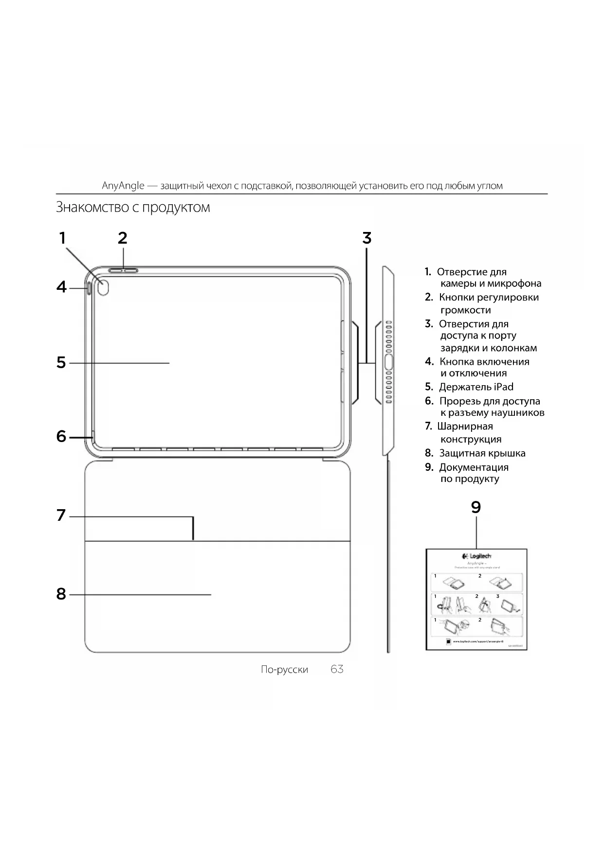 по продукту64 По-русски AnyAngle — защитный чехол с подставкой, позволяющей установить его под любым углом Подготовка к работе и использование чехла-книжки с iPad