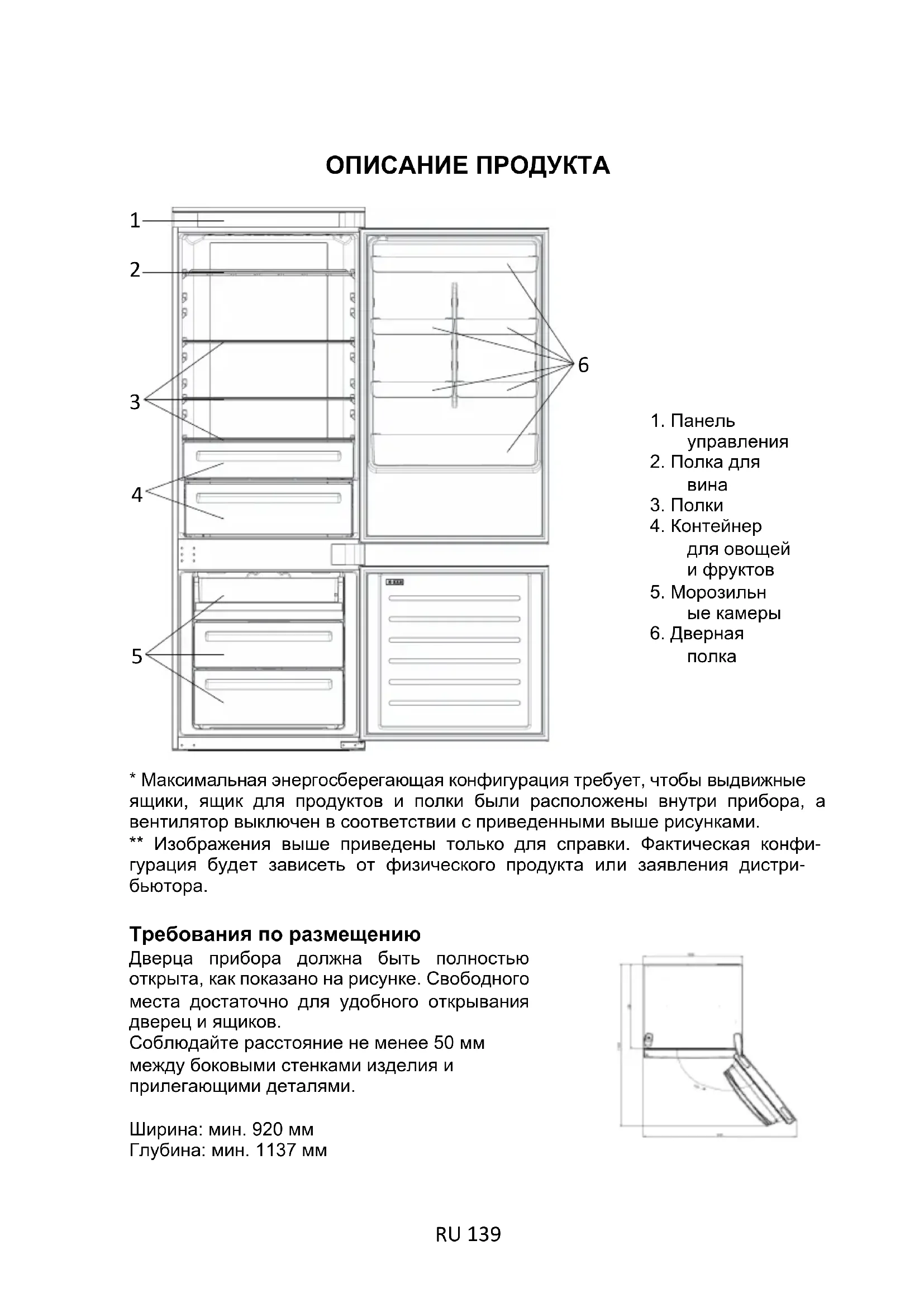 - Максимальная энергосберегающая конфигурация требует, чтобы выдвижные ящики, ящик для продуктов и полки были расположены внутри прибора, а вентилятор выключен в соответствии с приведенными выше рисунками. ** Изображения выше приведены только для справки. Фактическая конфи- гурация будет зависеть от физического продукта или заявления дистри-
