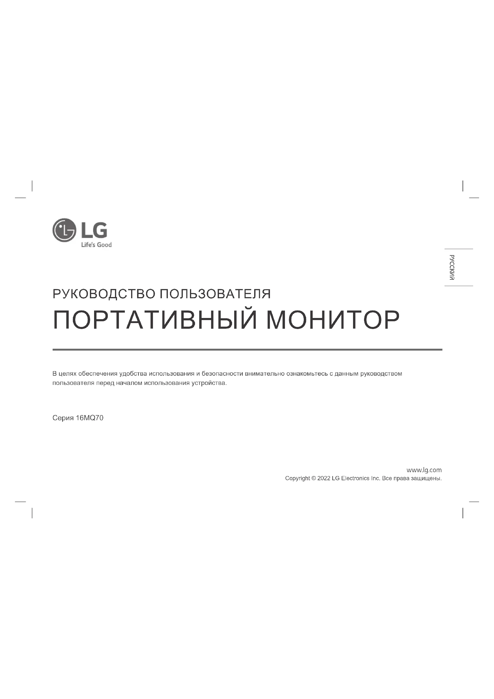 РУКОВОДСТВО ПОЛЬЗОВАТЕЛЯ Gran +View 16MQ70 LG