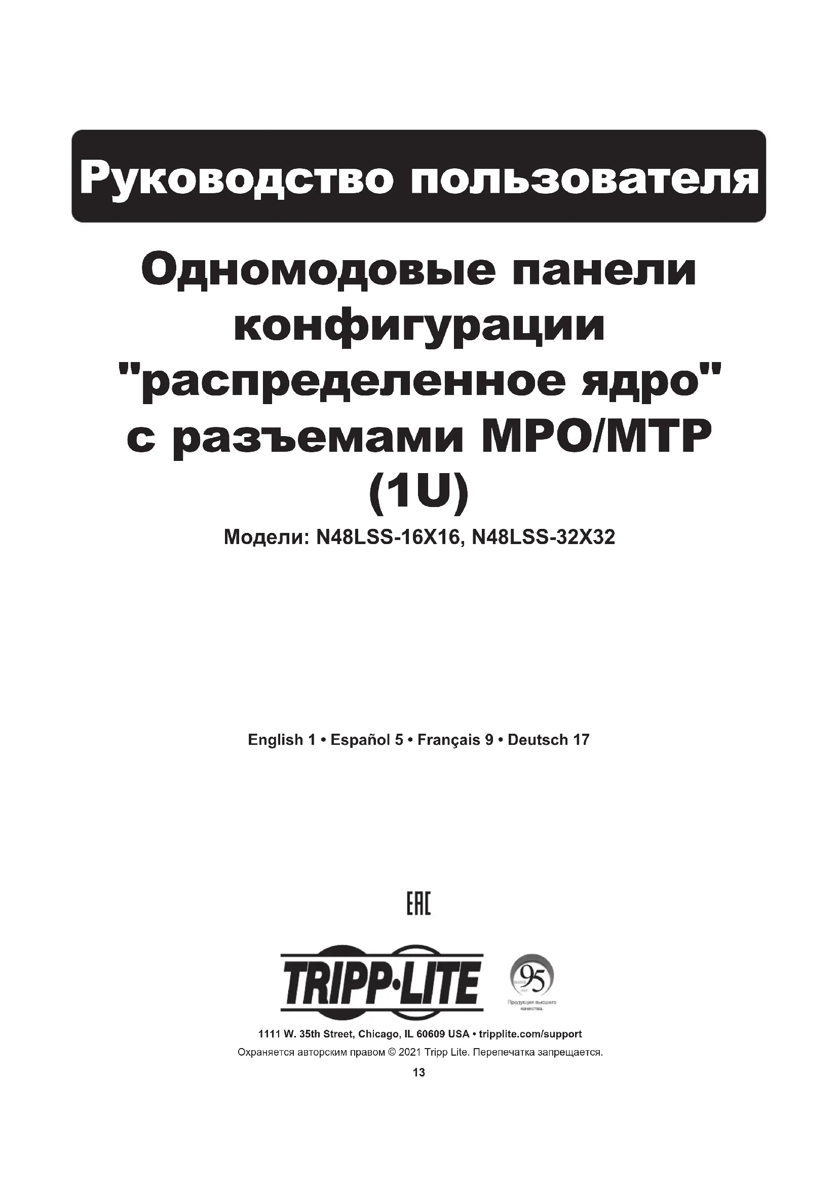 РУКОВОДСТВО ПОЛЬЗОВАТЕЛЯ N48LSS32X32 Tripp Lite