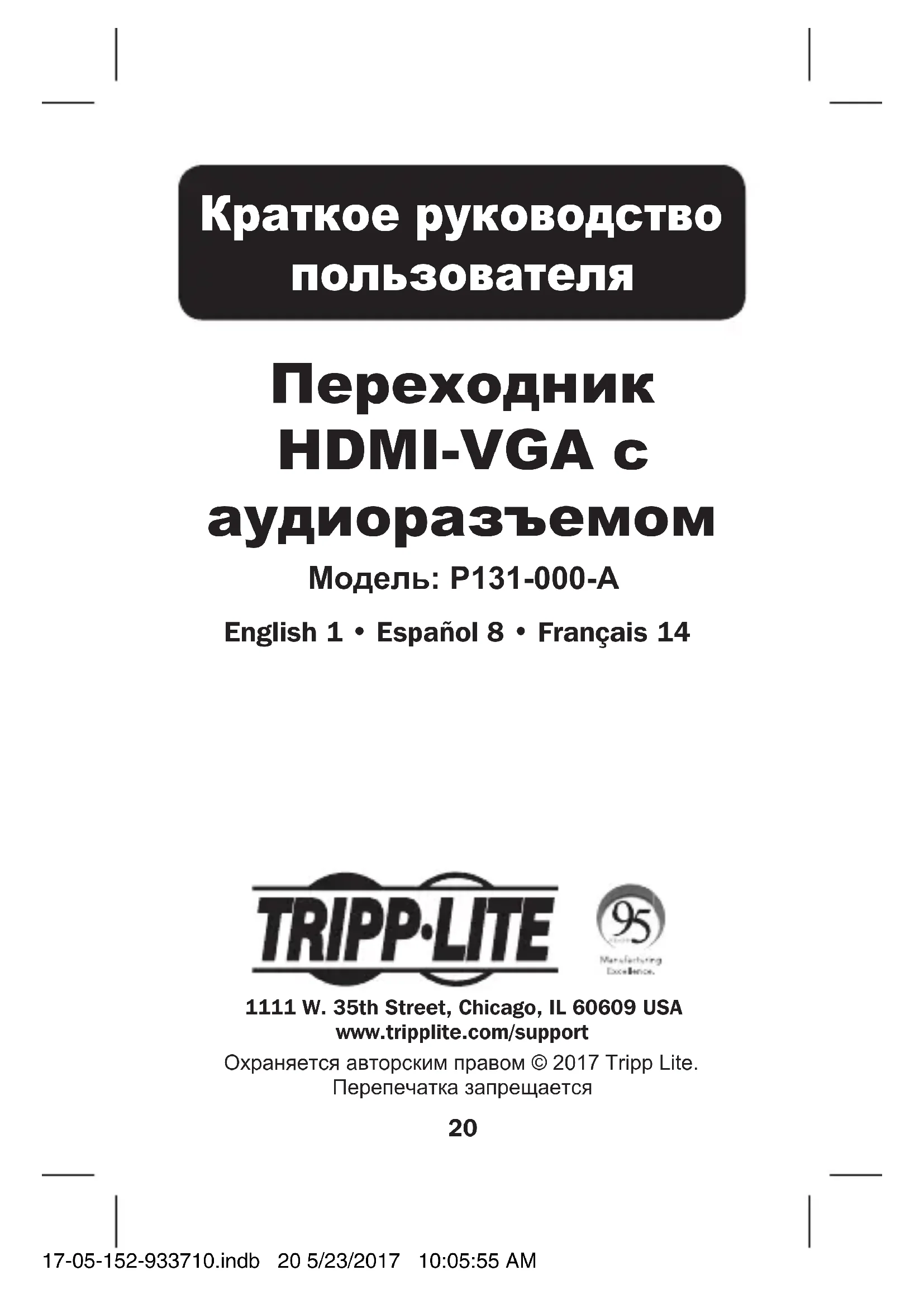 Найдите руководство к устройству бесплатно P131000A Tripp Lite в формате PDF.