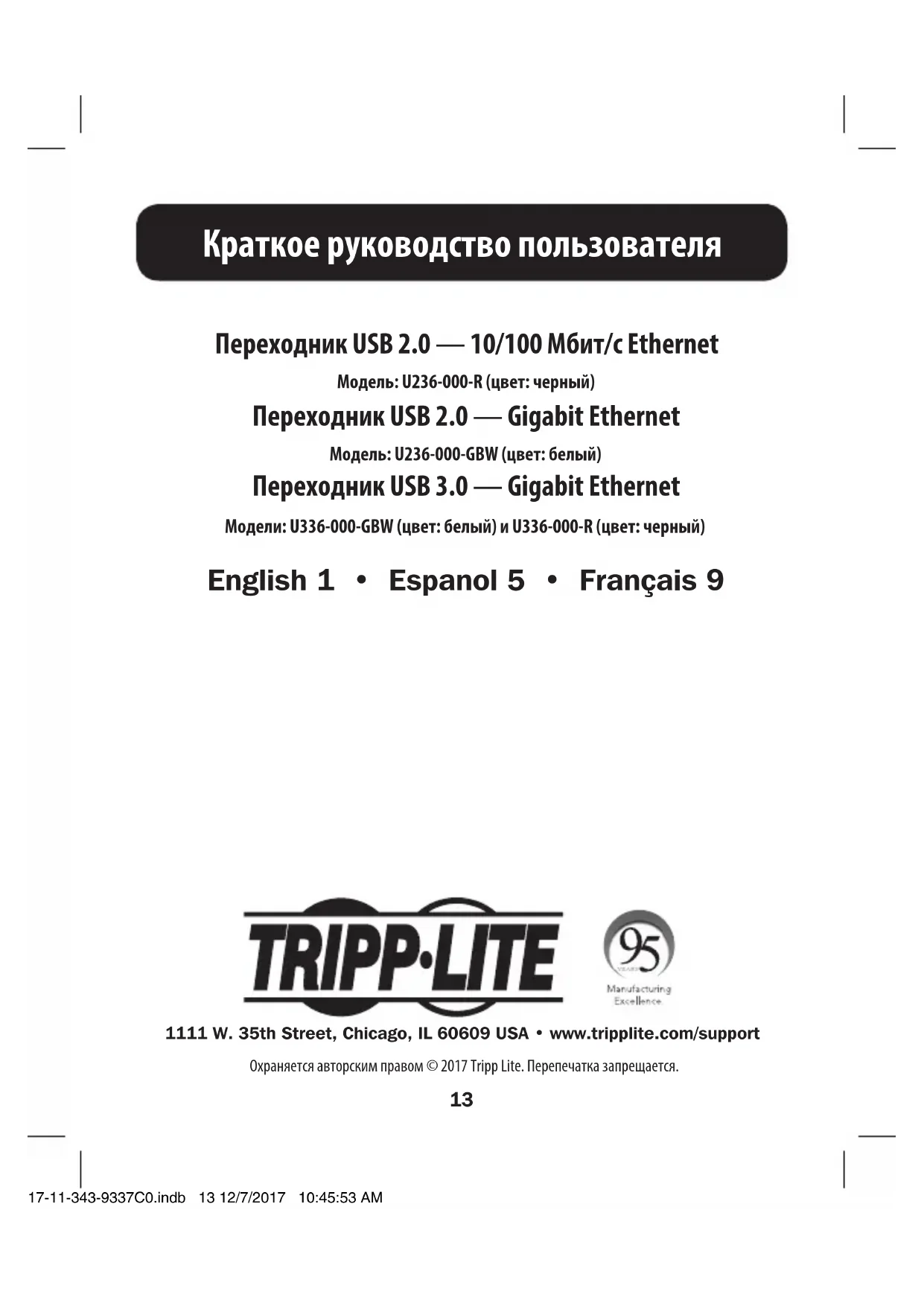 U236000R - Сетевой адаптер Tripp Lite - Бесплатное руководство пользователя