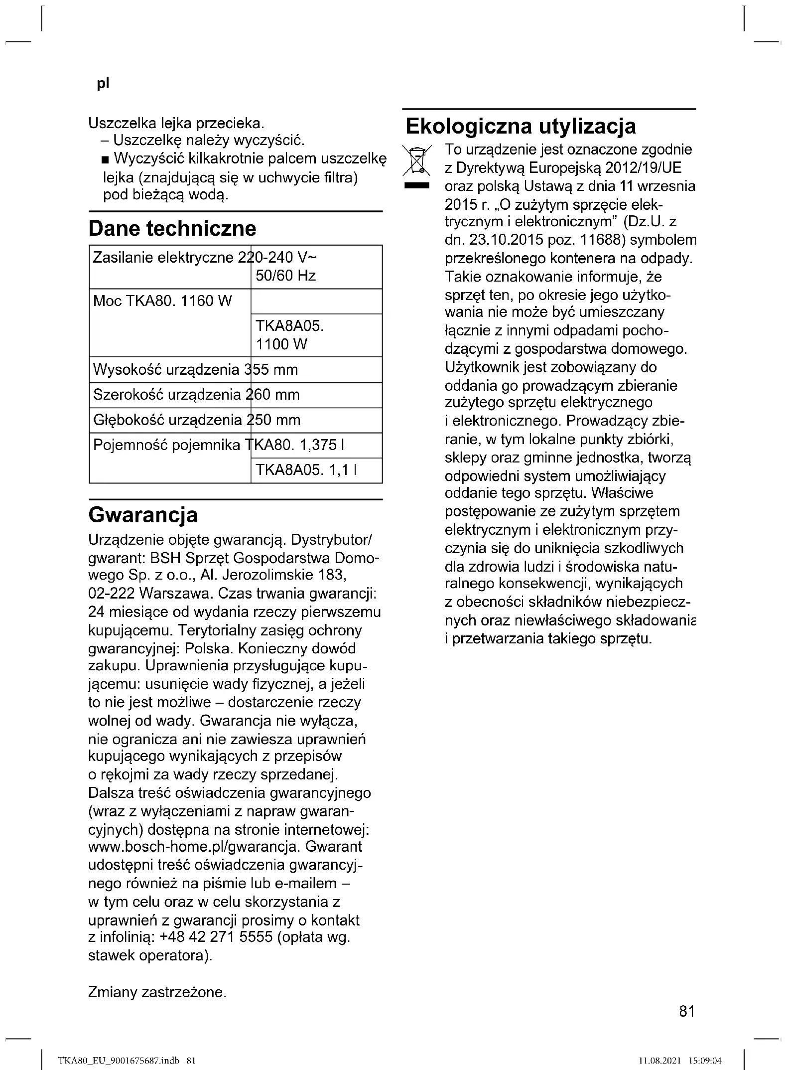 Найдите руководство к устройству бесплатно TKA8A054 BOSCH в формате PDF.