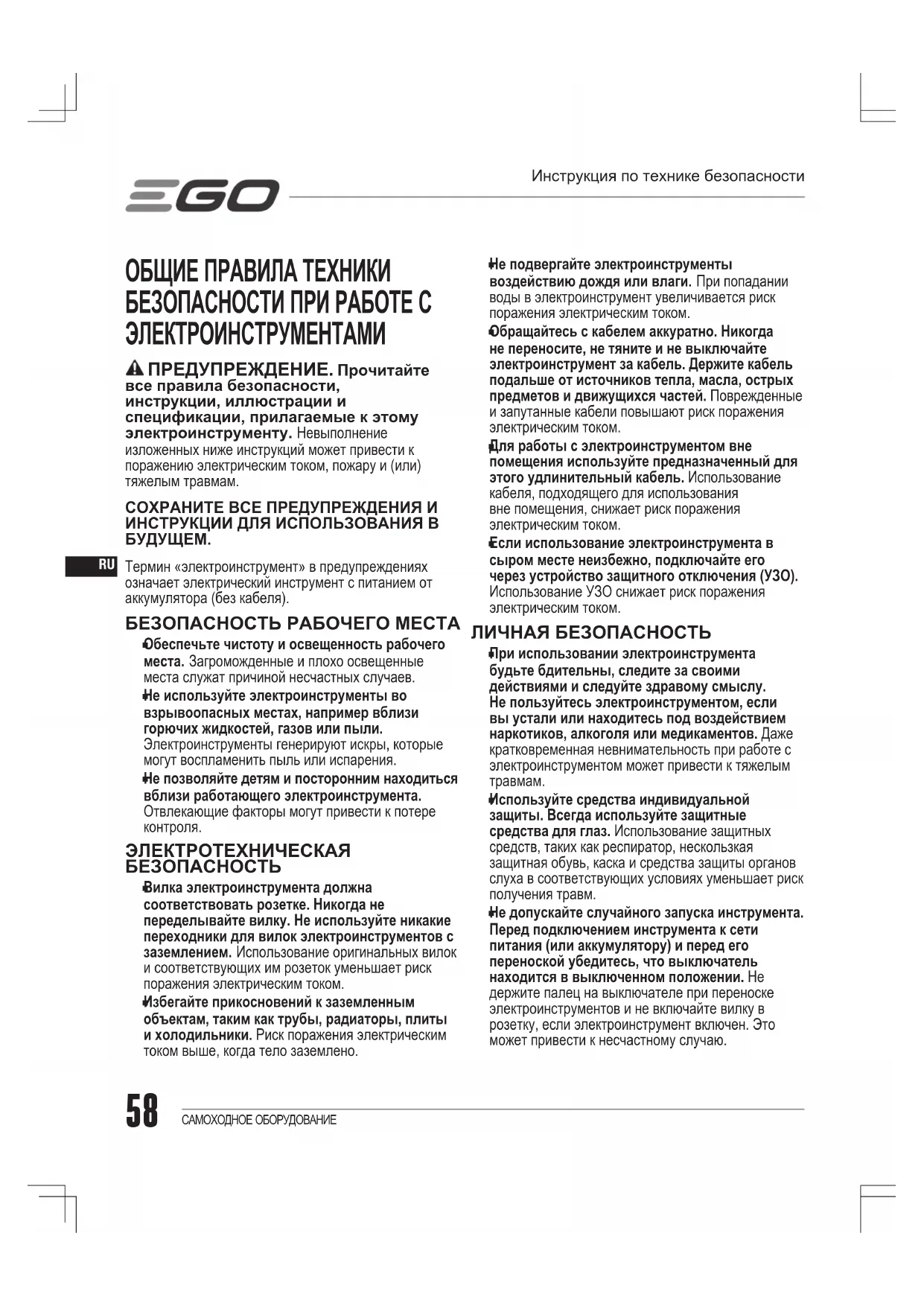 При возникновении ситуаций, не описанных в данном руководстве, соблюдайте осторожность и руководствуйтесь здравым смыслом. Для получения помощи обращайтесь в службу поддержки клиентов EGO.