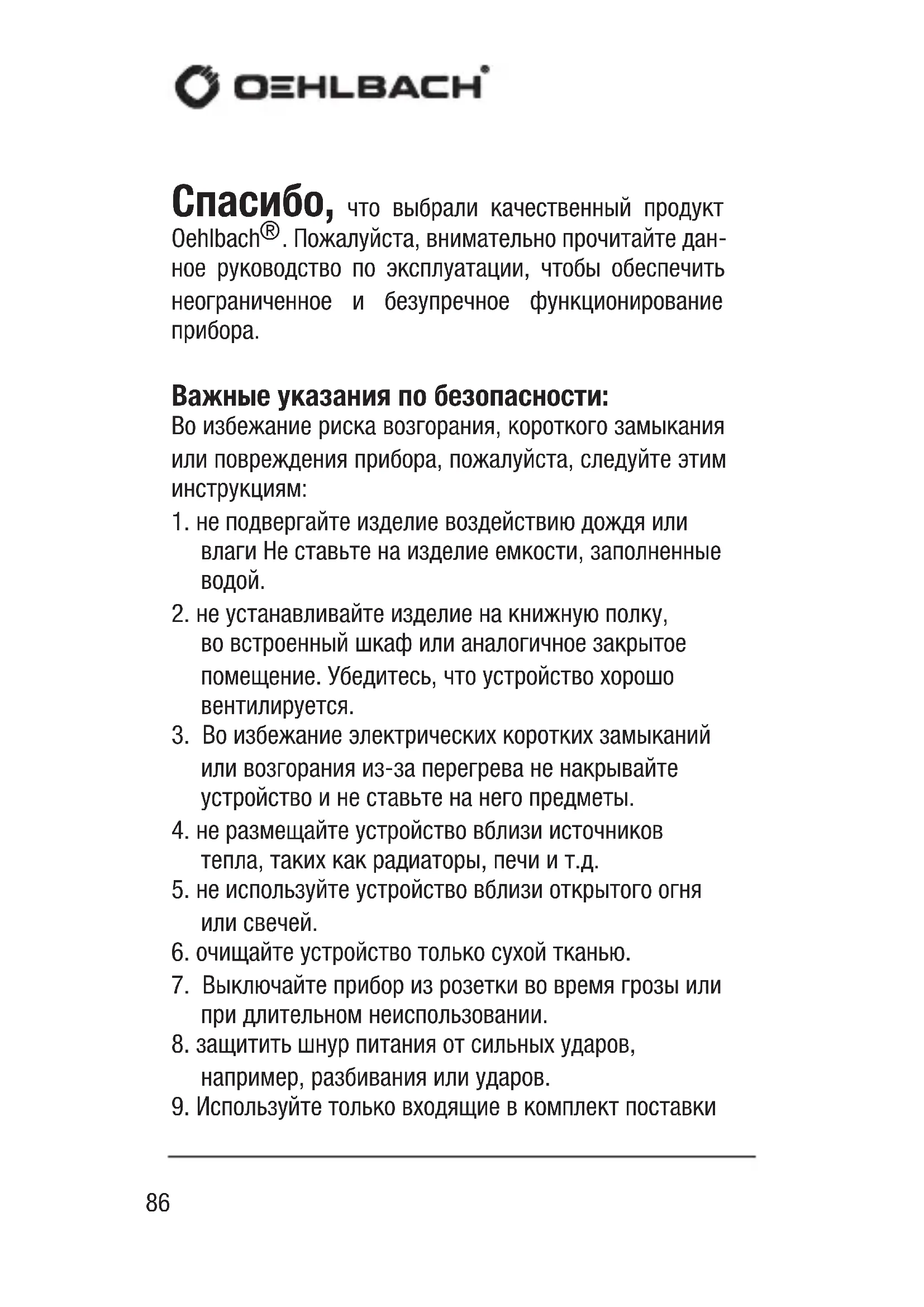 Поздравляем Вас! Своим мудрым выбором Вы стали обладателем продукта OEHLBACH
