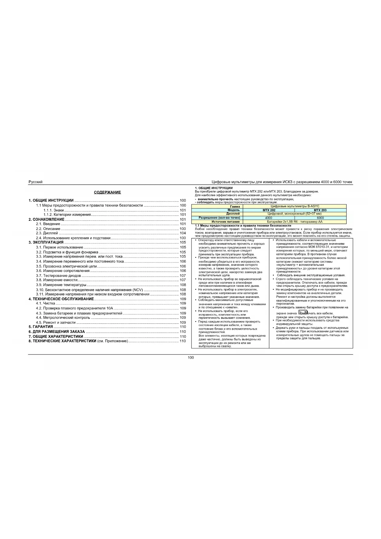 1.1 Меры предосторожности и правила техники безопасности .................................. 100